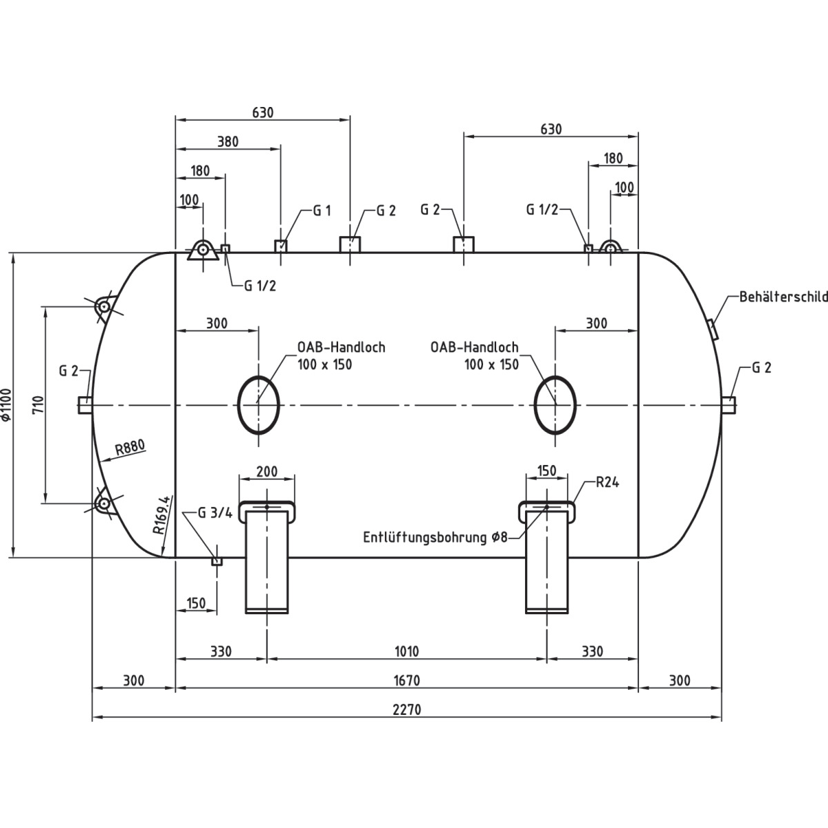 - Druckluftbehälter nach AD 2000 / ohne Armaturensatz / 11 und 16 bar