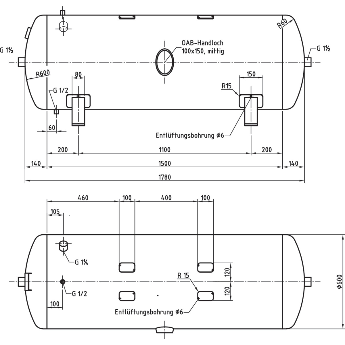 - Druckluftbehälter nach AD 2000 / ohne Armaturensatz / 11 und 16 bar