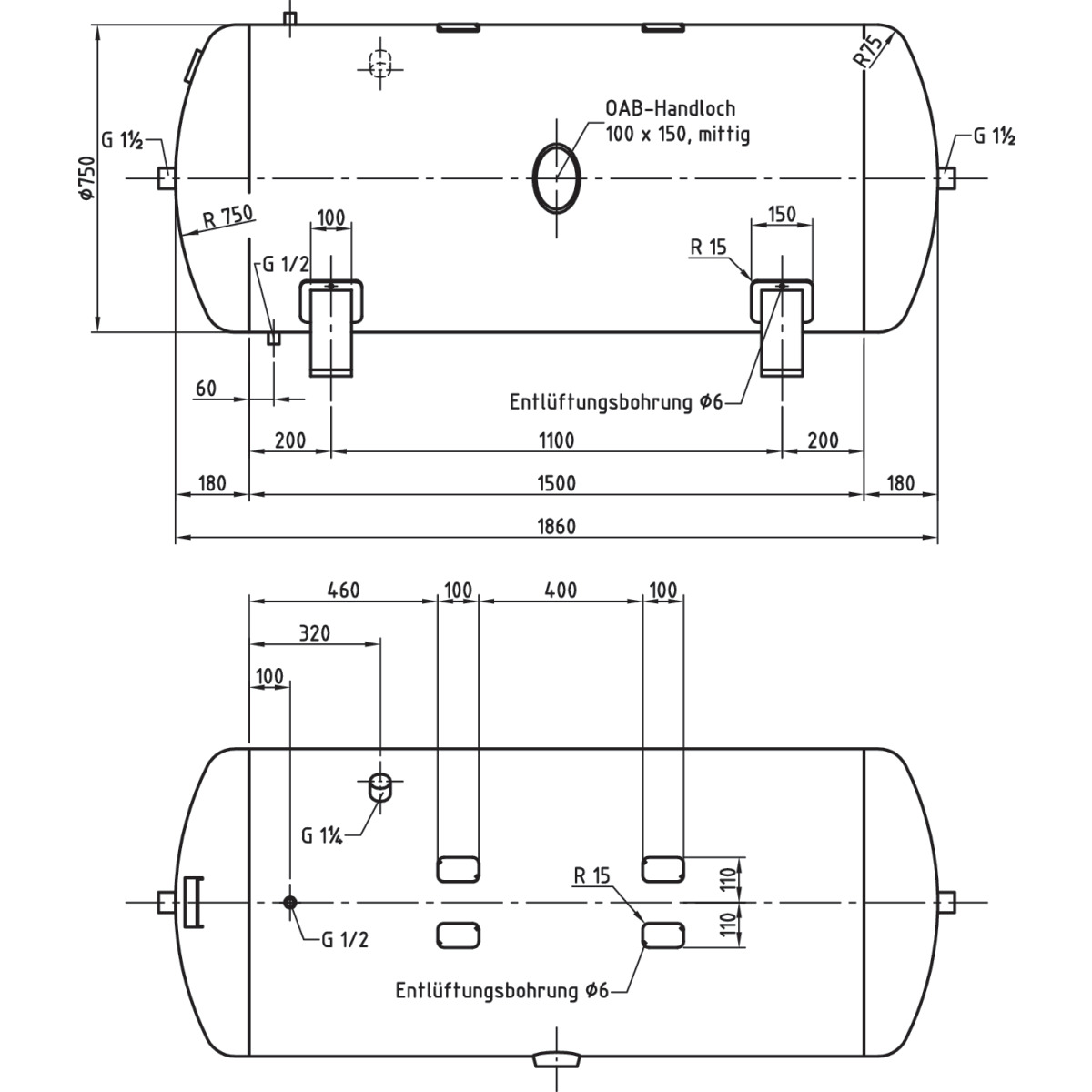 - Druckluftbehälter nach AD 2000 / ohne Armaturensatz / 11 und 16 bar