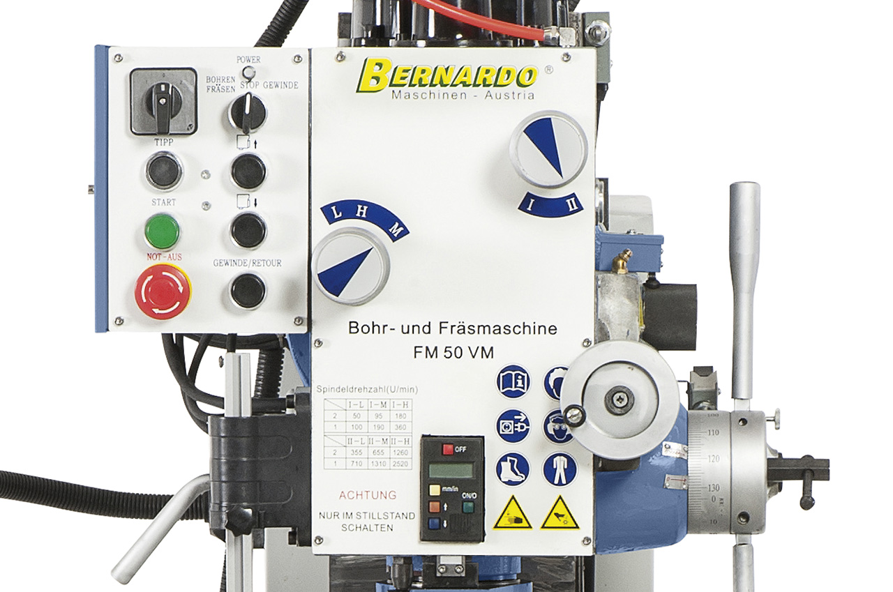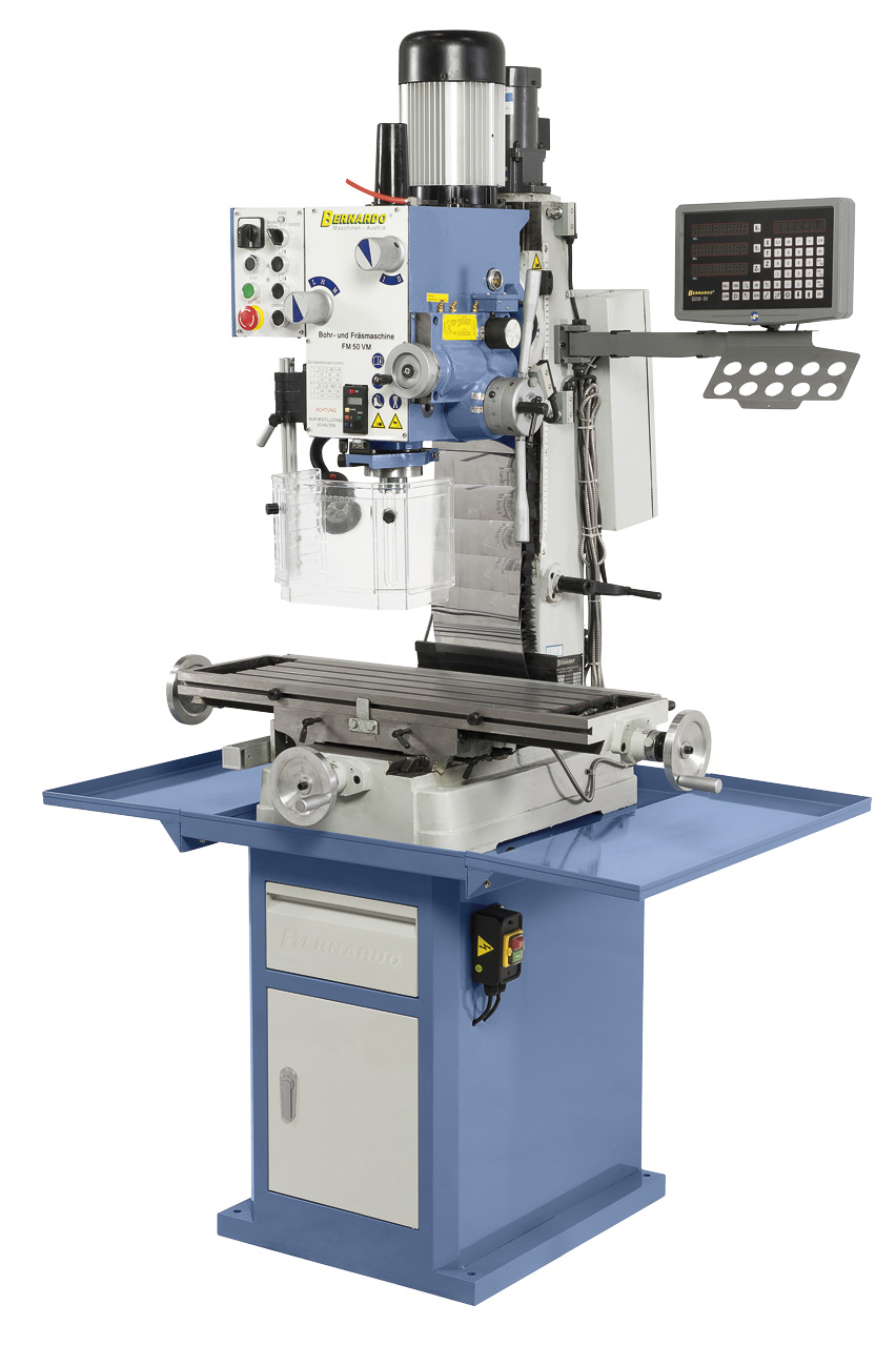 Die Bohr- und Fräsmaschine FM 50 VM - eine Weiterentwicklung der bewährten FM 45 V - bietet durch die motorische Höhenverstellung des Fräskopfes sowie der digitalen Pinolenhubanzeige einen hohen Bedienkomfort. Durch die kompakte Bauweise und dem großen Leistungsbereich ist dieses Modell optimal geeignet für Modellbauer, Handwerker und Reparaturwerkstätten.