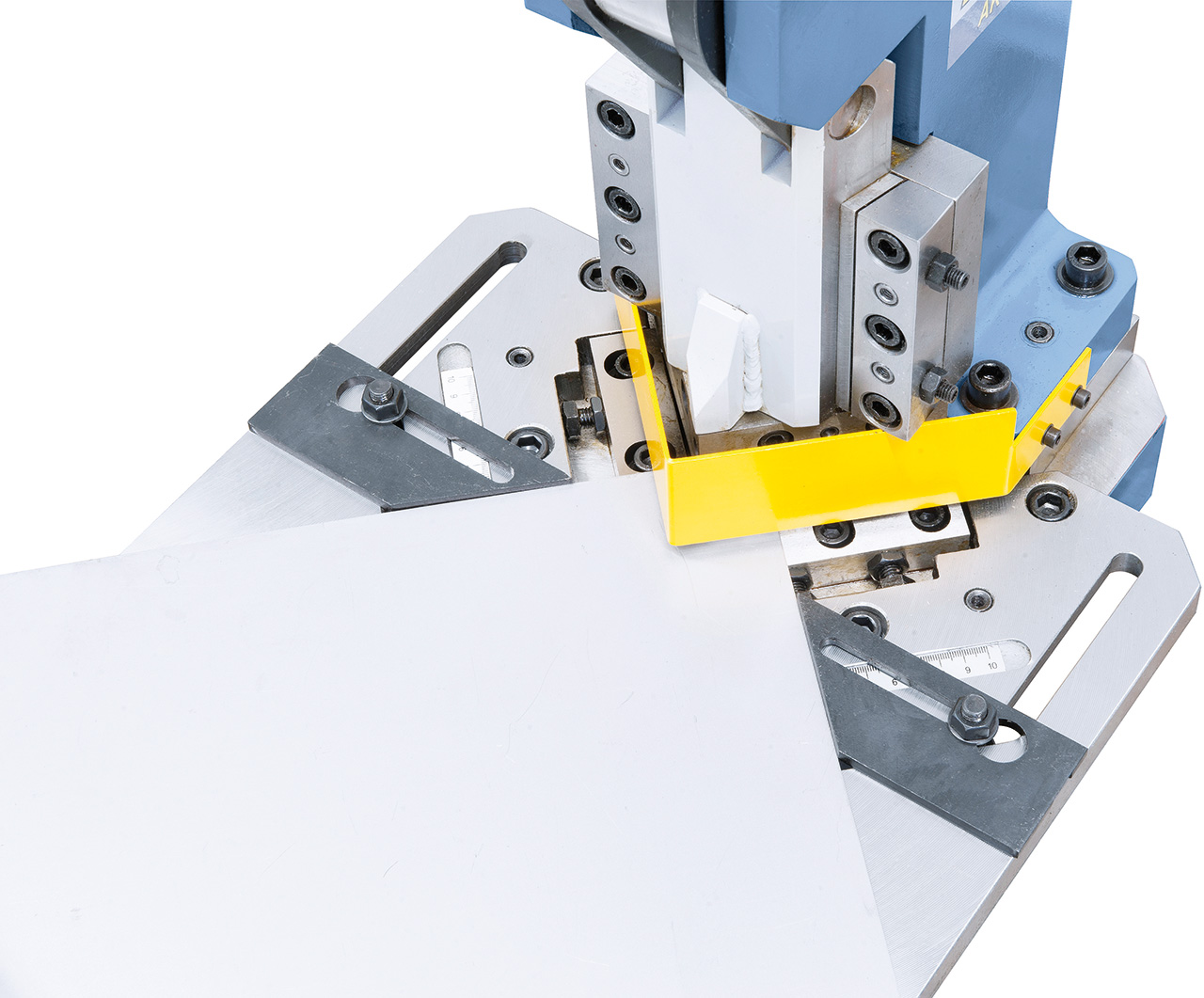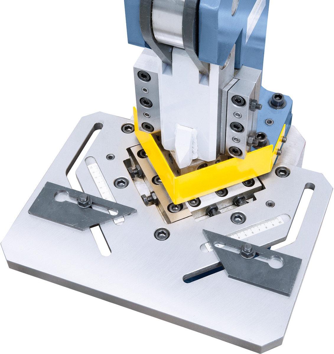 Einstellbare Anschläge mit Skalen, ideal für Serienarbeiten.