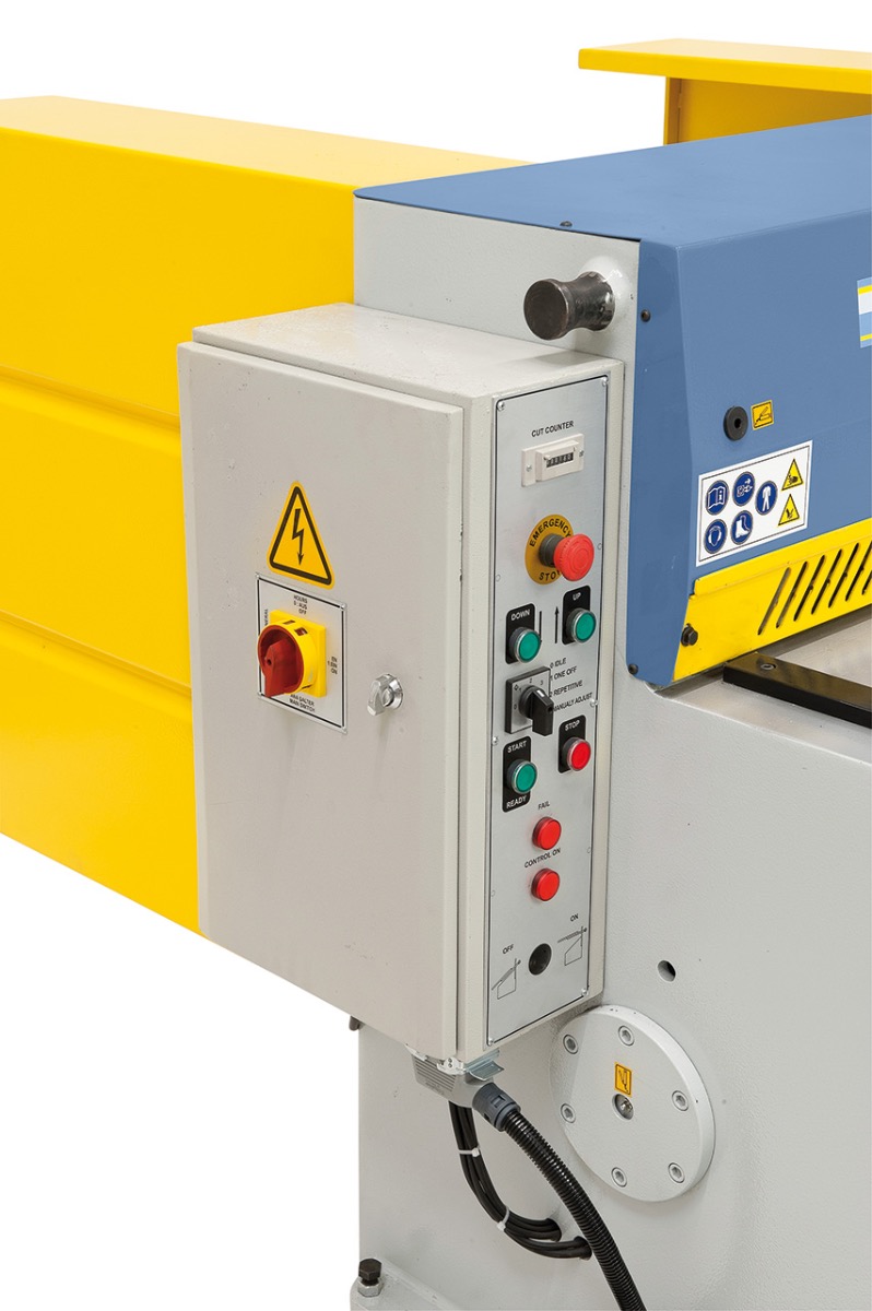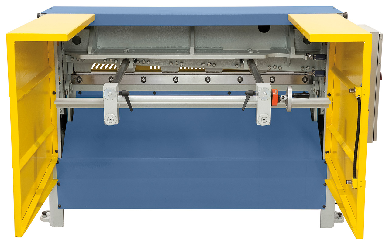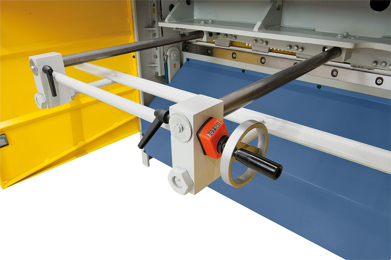 Scherentisch mit rechtwinkeligem Anschlag für exaktes Einstellen des Werkstückes