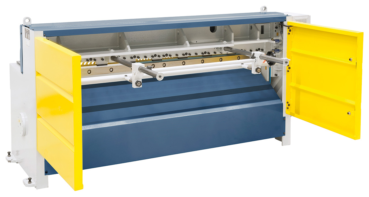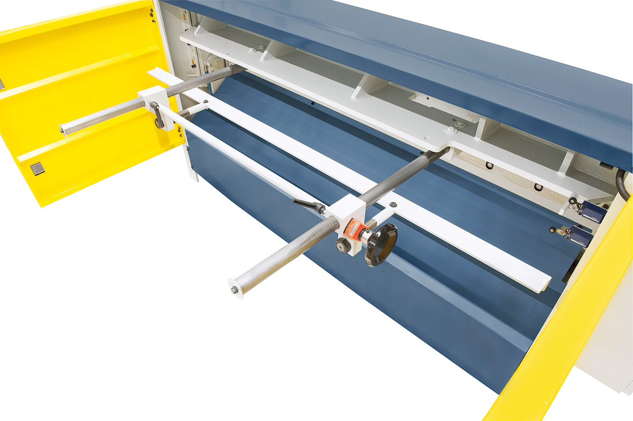 Scherentisch mit rechtwinkeligem Anschlag für exaktes Einstellen des Werkstückes