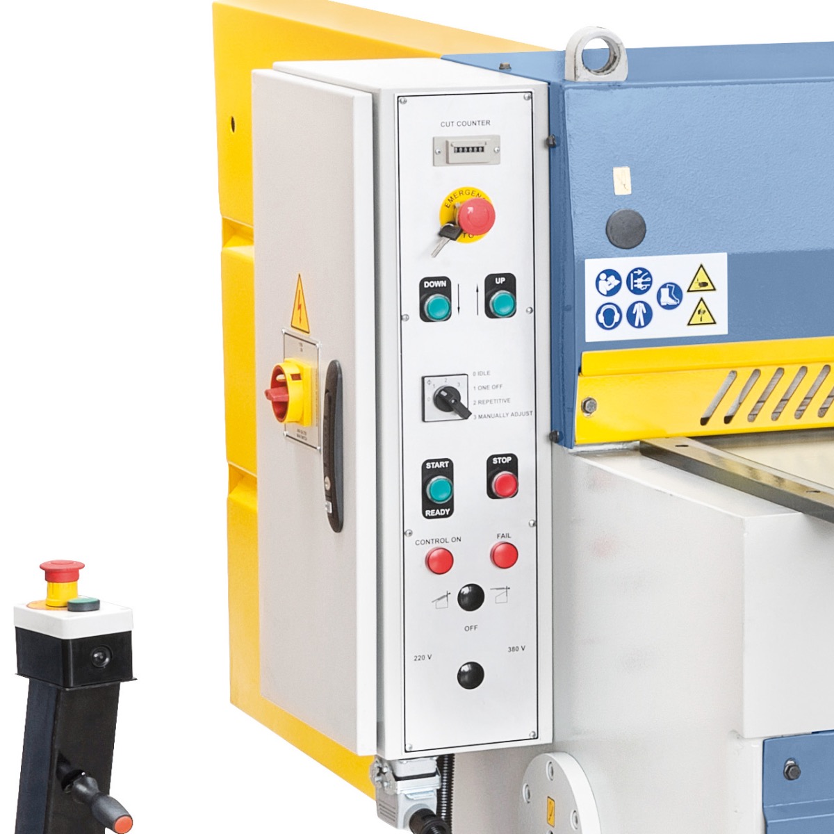 Schneiden mittels Fußpedal, Hände bleiben frei zum optimalen Positionieren des Bleches