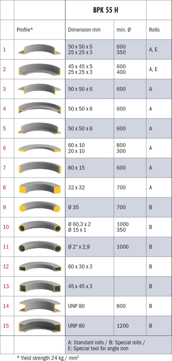 Standardwalzensatz zum Biegen verschiedenster Profile verwendbar.
