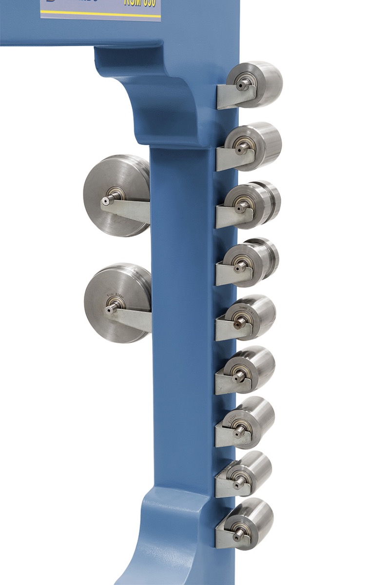 9 Stk. Formrollen und 3 Stk. obere Rollen serienmäßig, praktische Halterung zum Aufbewahren am Standfuss.
