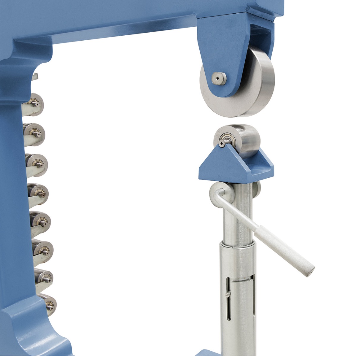 Einfaches Einstellen der unteren Formrolle mittels Fußrad.