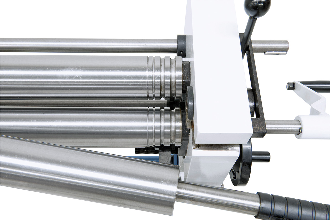 Die Zustellung der Unter- und Hinterwalze erfolgt über ergonomisch angebrachte Handräder.