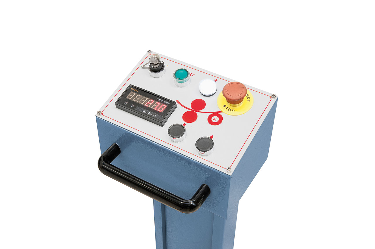 Übersichtliches Bedienpaneel, Zustellung der Hinterwalze erfolgt motorisch, Einstellung über Digitalanzeige ablesbar (Standard).