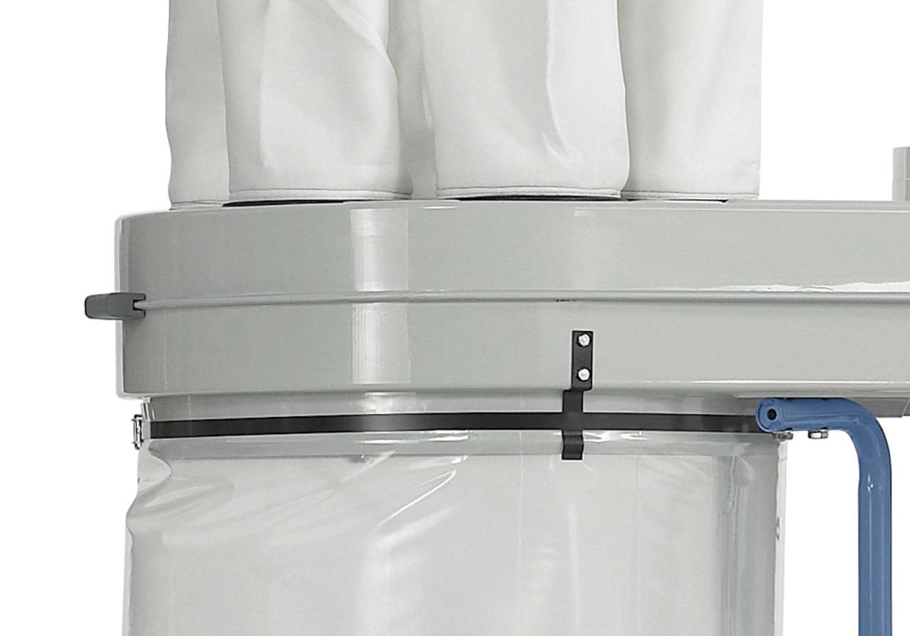 Einfacher Wechsel der Spänesäcke durch spezielle Klemmhaltung