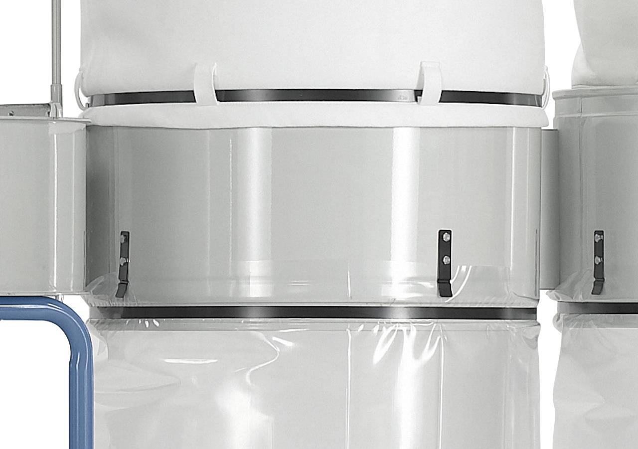 Einfacher Wechsel der Spänesäcke durch spezielle Klemmhaltung