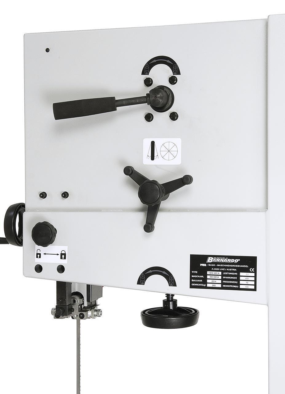 Einfacher Sägebandwechsel mittels Schnellspannhebel an der Rückseite