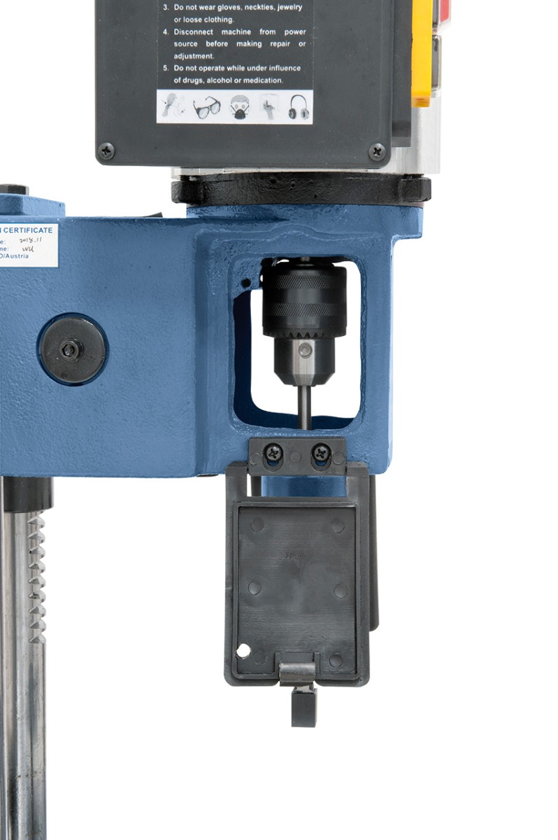 Höhenverstellung des Bohrkopfes erfolgt über Zahnstange