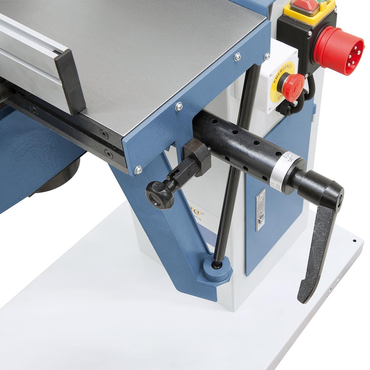 Die Höhenverstellung des Arbeitstisches erfolgt leichtgängig und präzise mittels Handrad.