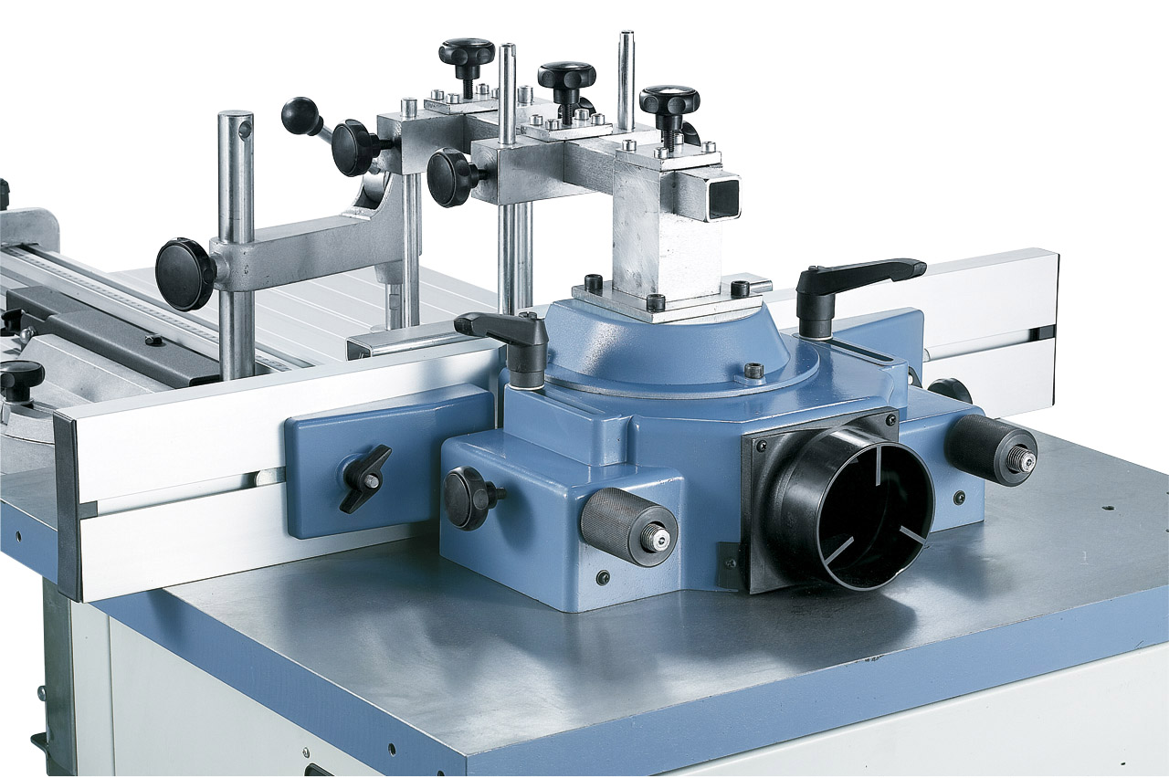 Die Fräserschutzhaube ist mit einer Feineinstellung ausgestattet. Die Späneabfuhr erfolgt über den integrierten Absauganschluss.