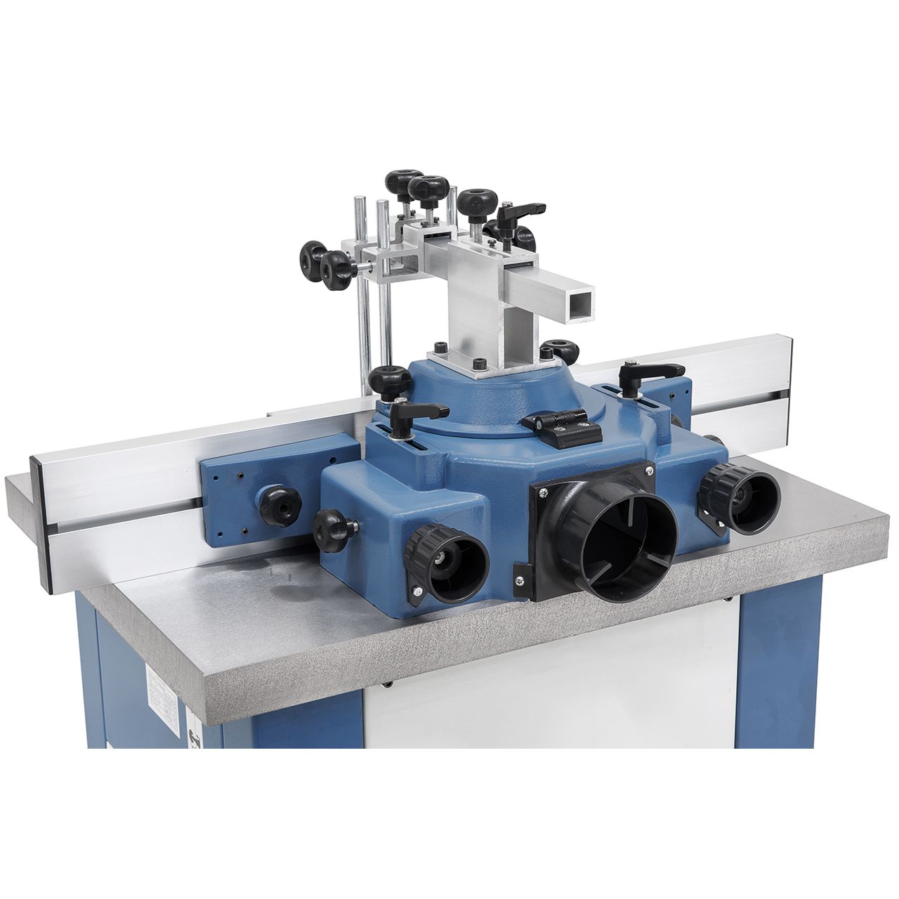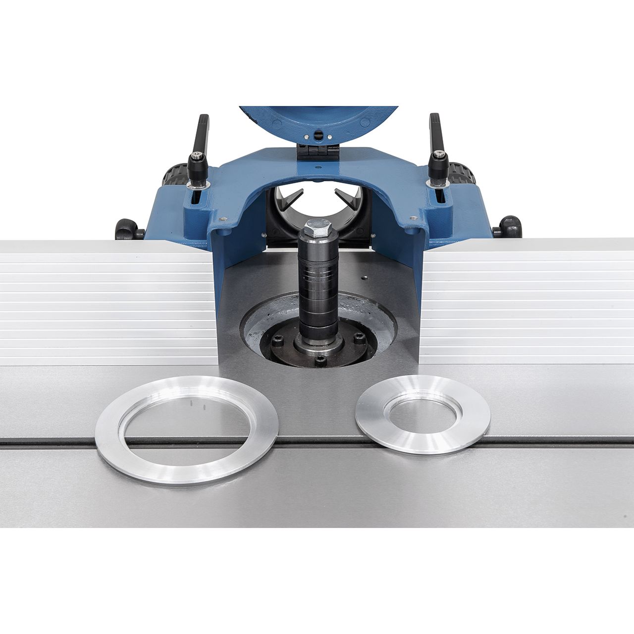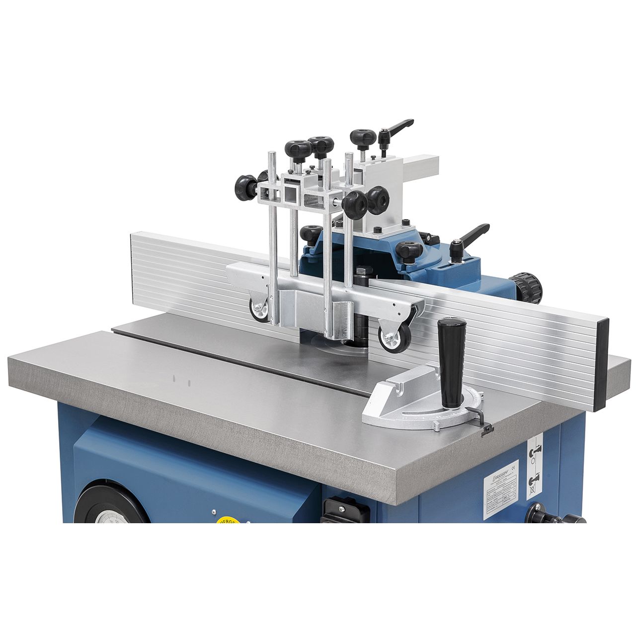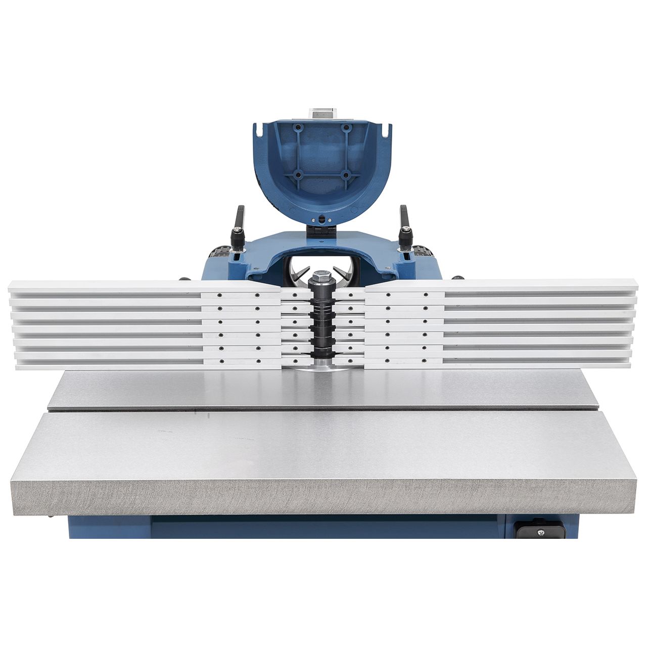Der massive Fräseranschlag kann für Werkzeuge bis 200 mm verwendet werden. Die beidseitigen Anschlagschienen sind serienmäßig mit einer Feineinstellung ausgestattet.
