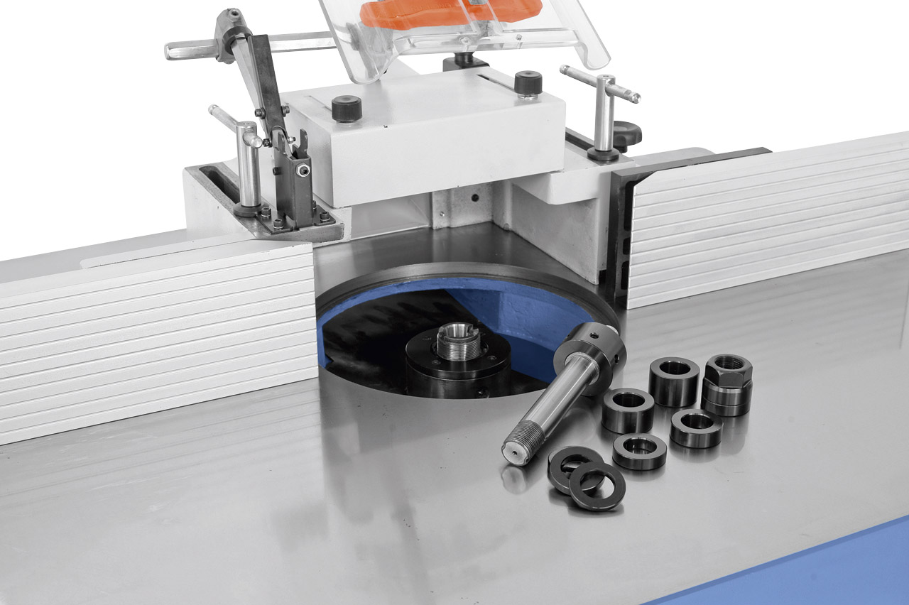 Die Späneabfuhr erfolgt durch die Fräserschutzhaube und einer zusätzlichen Untertischabsaugung, dadurch ist ein sauberes Arbeiten gewährleistet.