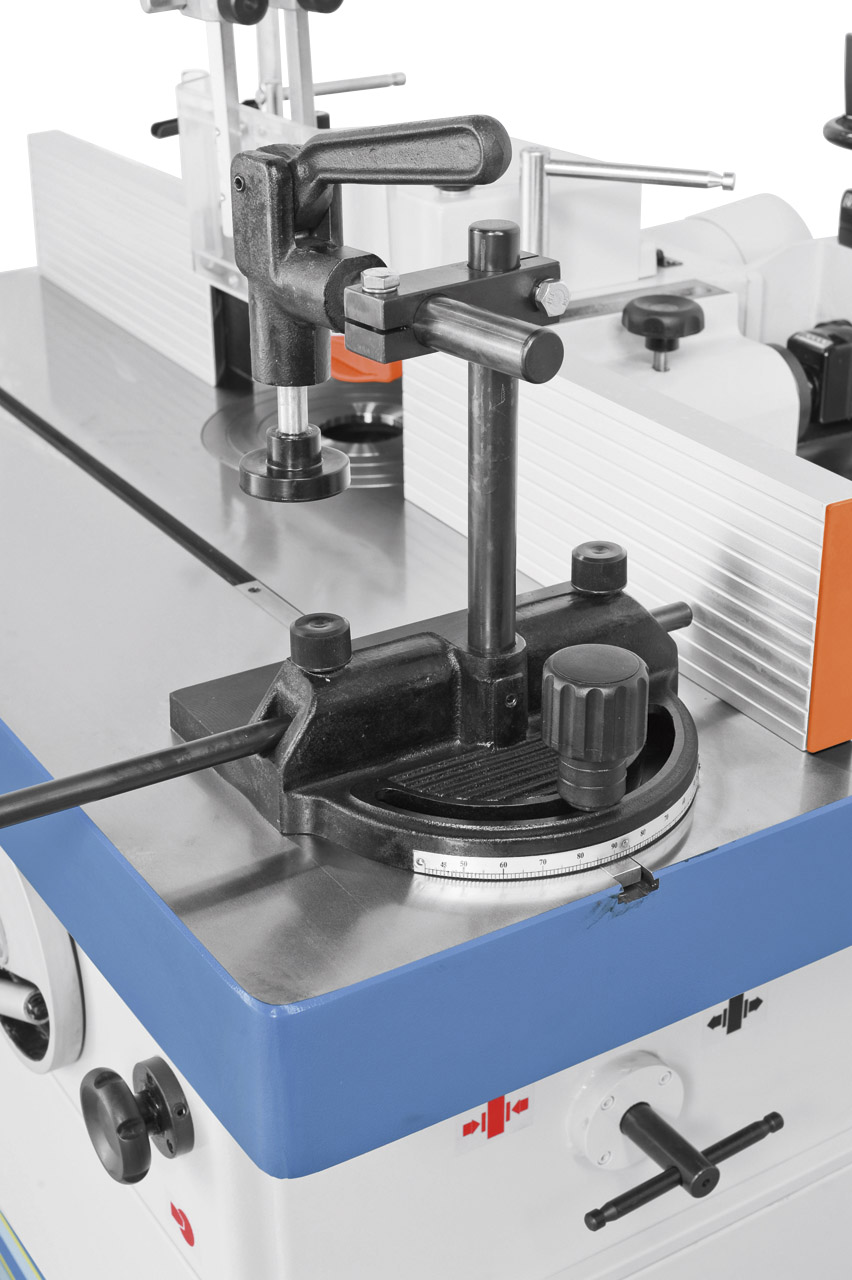 Die Einstellung des Fräsanschlages erfolgt über ein Handrad, die Ablesung erfolgt mittels digitaler Anzeige auf 1/10 genau