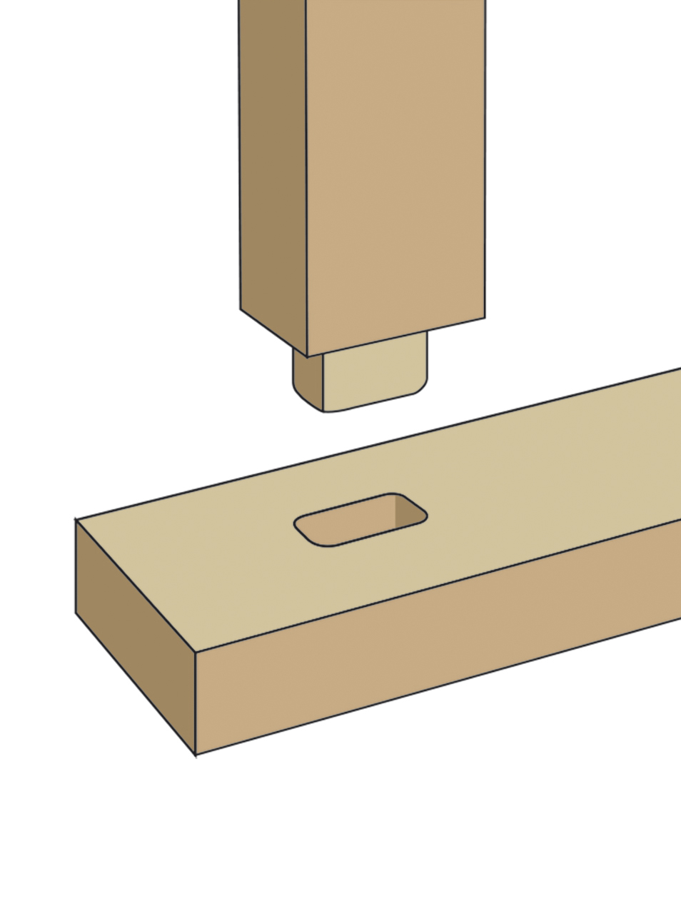 Hohe Standfestigkeit durch die Zapfen-Schlitz-Verbindung im Fußgestell
