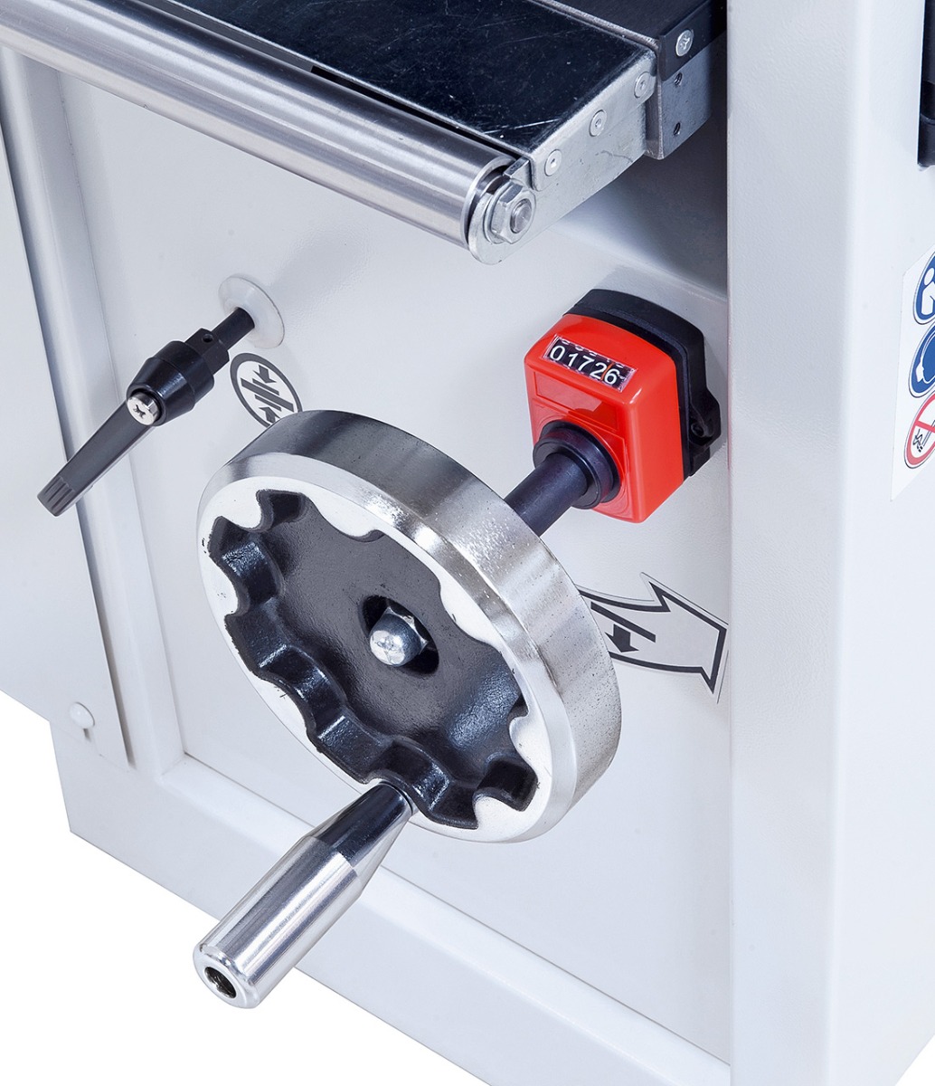 Die Einstellung der Dickentischhöhe erfolgt mittels digitaler Anzeige auf 1/10 mm genau.