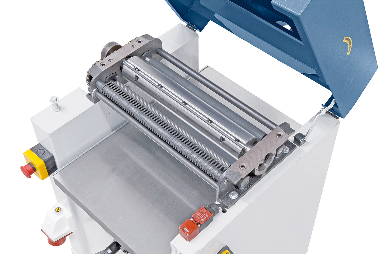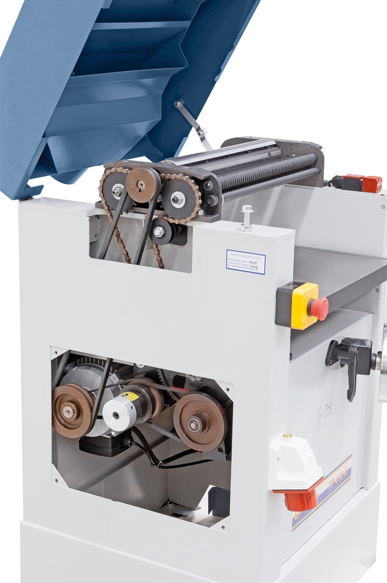 Beschreibung:Die Dickenhobelmaschine TP 410 N ist serienmäßig mit einem stufenlosen Variatorgetriebe ausgestattet, wodurch die Vorschubgeschwindigkeit optimal an das Werkstück angepasst werden kann. Weiters verfügt dieses Modell über eine Digitalanzeige für die exakte Dickentischeinstellung. Features: