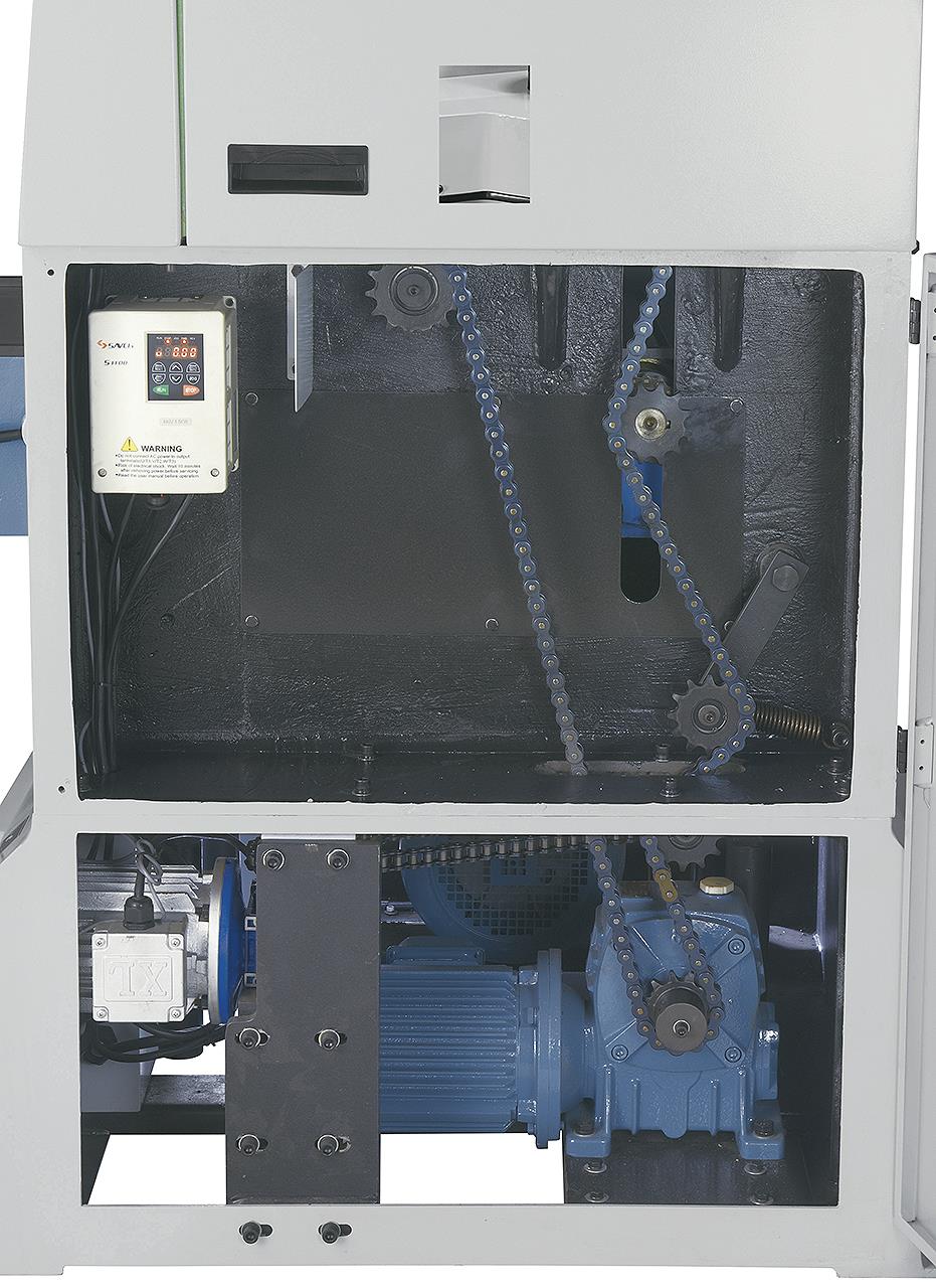 Mit dem Frequenzumrichter kann die Vorschubgeschwindigkeit der Ein- und Auszugswalze für präzise Hobelergebnisse optimal an das Werkstück angepasst werden