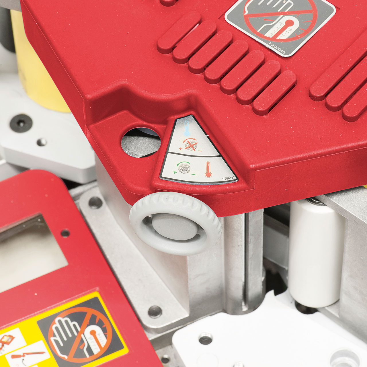 Die zugeführte Leimmenge kann über einen Drehknopf exakt eingestellt werden.