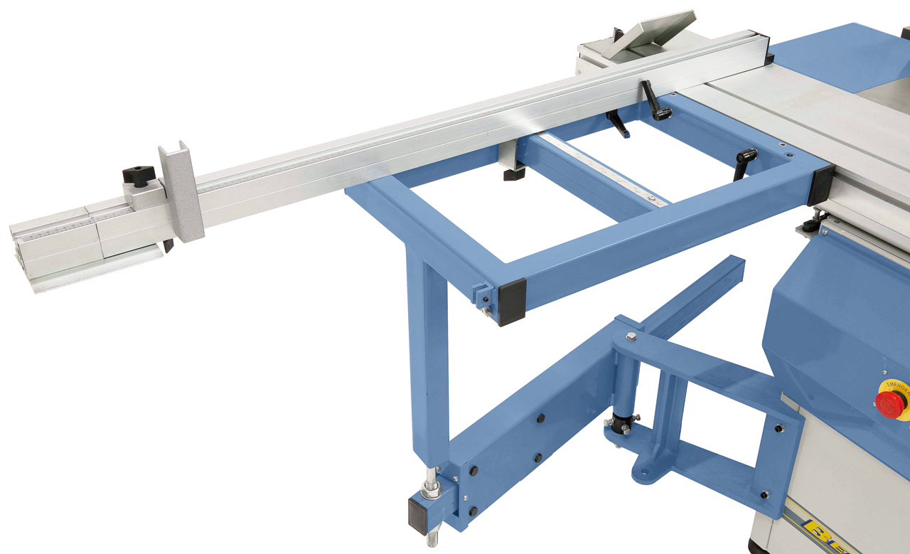 Ausziehbarer Teleskopanschlag am Besäumrahmen vorne und hinten montierbar