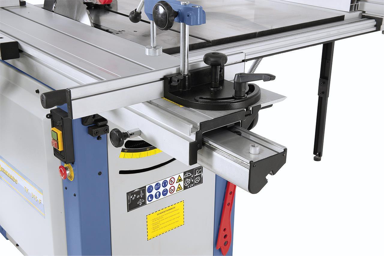 Beschreibung: Die Formatkreissäge TK 315 F ist je nach Anwendung wahlweise mit zwei verschiedenen Tischlängen lieferbar (1600 / 2000 mm). Serienmäßig ausgestattet mit einem 3,0 kW Motor und einem Sägeblatt mit 315 mm Durchmesser für Schnitthöhen bis 100 mm, sowie einem Vorritzaggregat für ein ausreißfreies Bearbeiten beschichteter Plattenwerkstoffen.