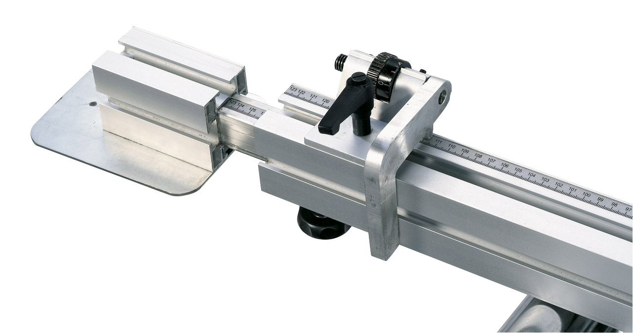 Ausziehbarer Teleskopanschlag bis 2260 mm mit feineinstellbarer Anschlagklappe.