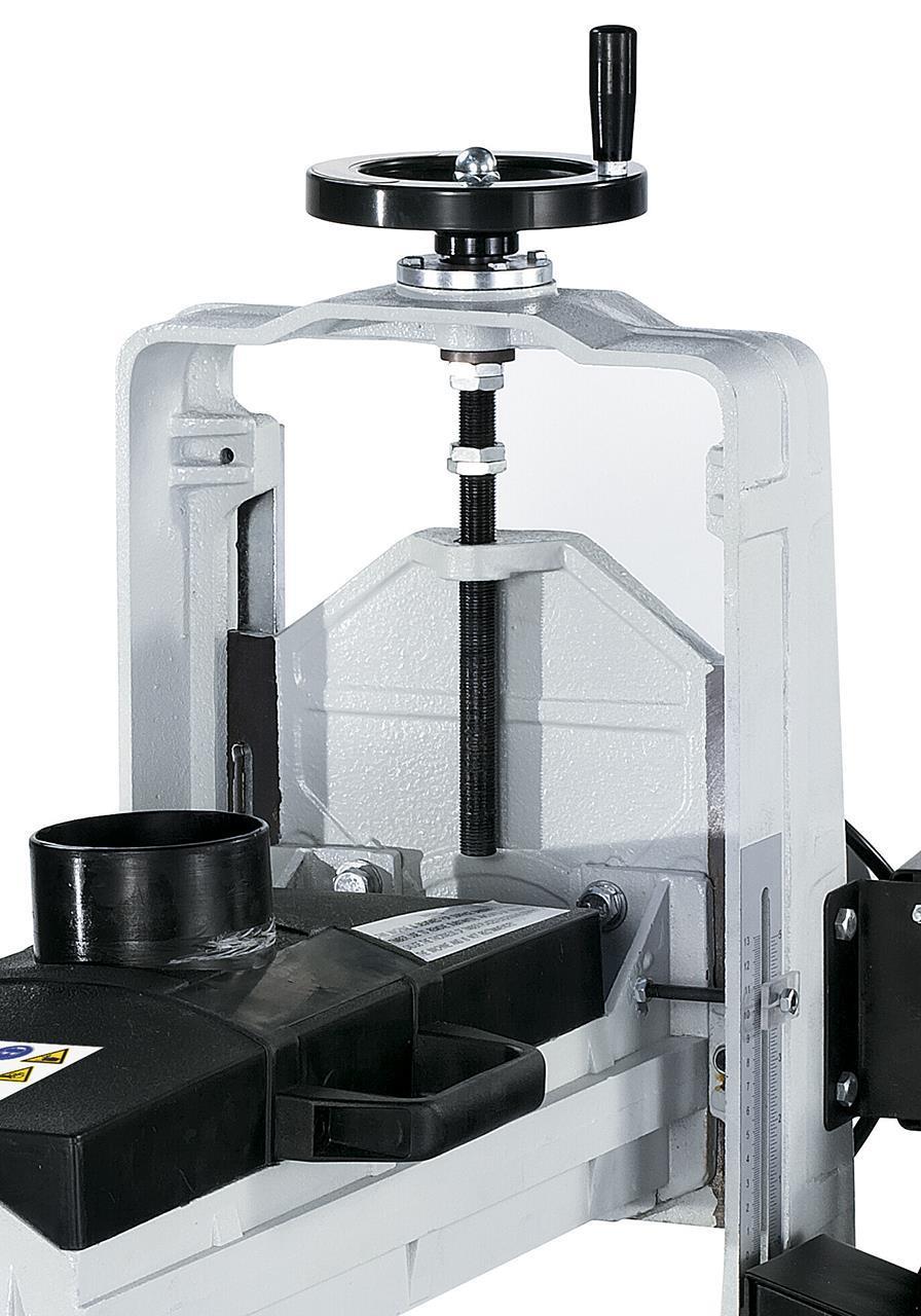 Schleifeinheit wird mittels Handrad und Skala an die Werkstückdicke angepasst