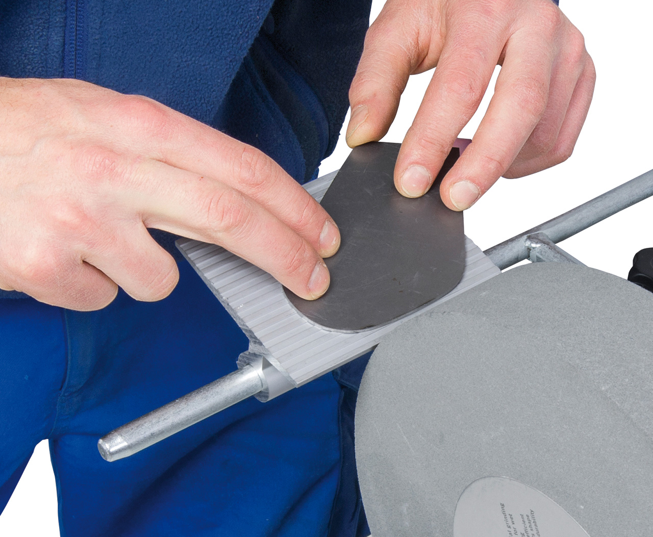 Sichere Arbeitsweise durch die niedrige Drehzahl der Schleifscheibe, keine Gefahr von Funkenflug