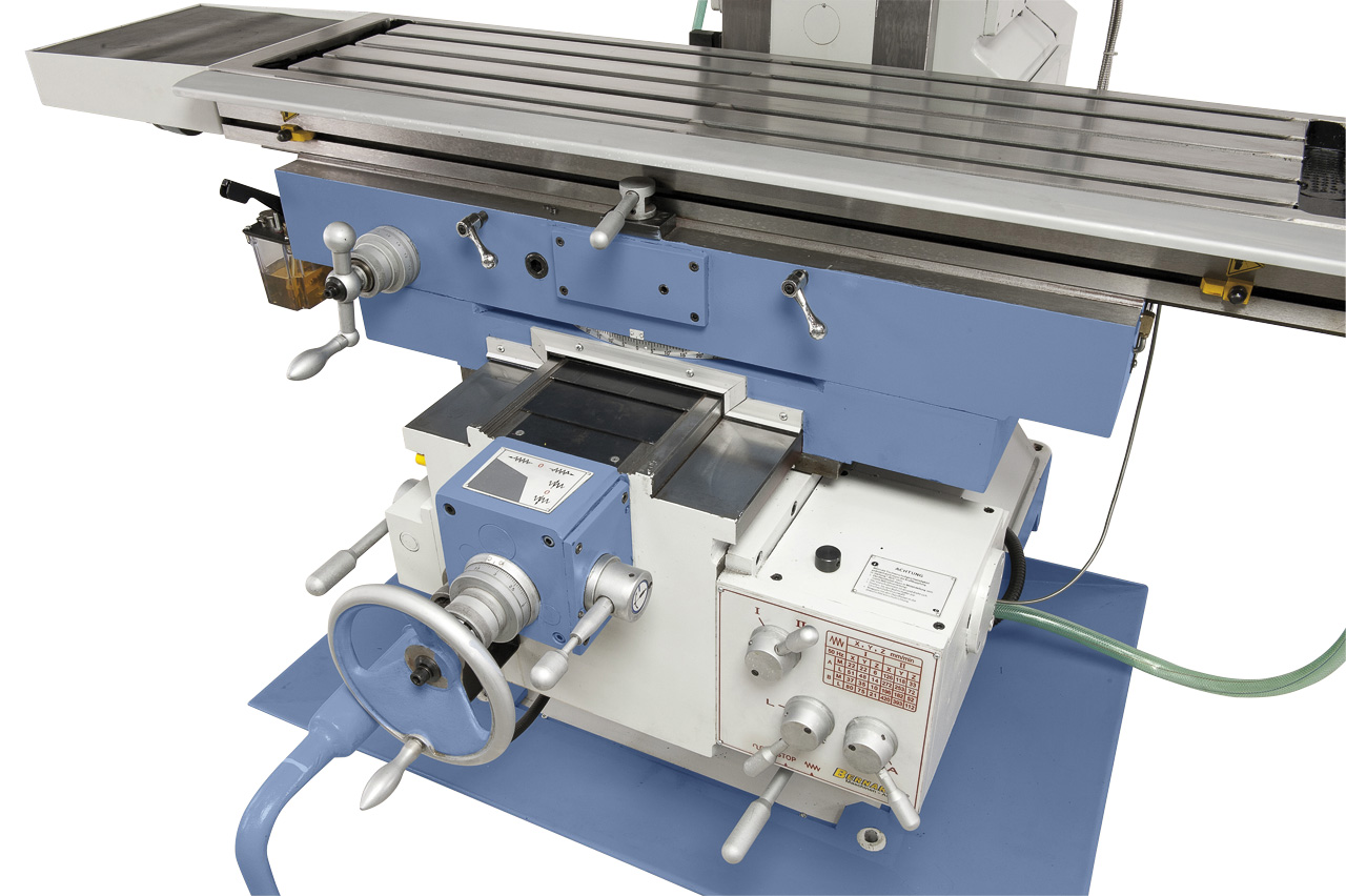 Beschreibung:Die Universalfräsmaschine UWF 95 N - eine Weiterentwicklung der bewährten UWF 90 - bietet durch die vergrößerte Tischaufspannfläche einen erweiterten Einsatzbereich sowie hohen Bedienkomfort durch den automatischen Bohrvorschub. Zusätzlich bietet dieses Modell einen Verfahrweg in der x-Achse von 1000 mm sowie eine pneumatische Werkzeugklemmung. Features:
