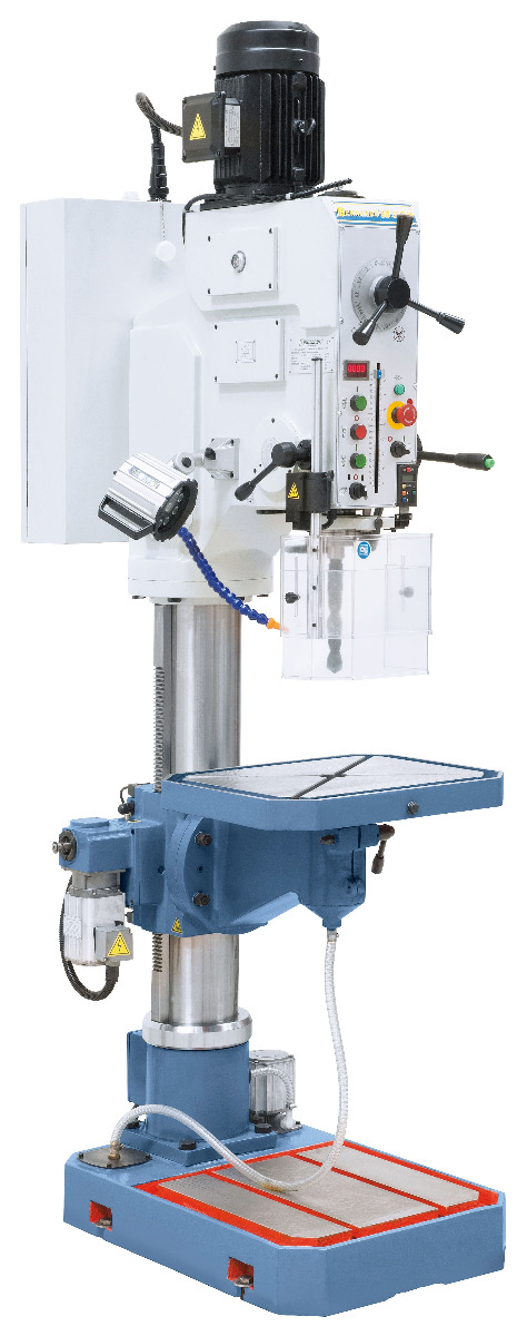 Beschreibung:Die Getriebebohrmaschine GB 35 THS ist serienmäßig mit einem motorischen Tischhub zur Reduzierung der Nebenzeiten ausgestattet. Die Digitalanzeige für die Bohrtiefe bzw. Drehzahl, sowie der elektromechanische Spindelvorschub werten die Maschine weiter auf. Features: