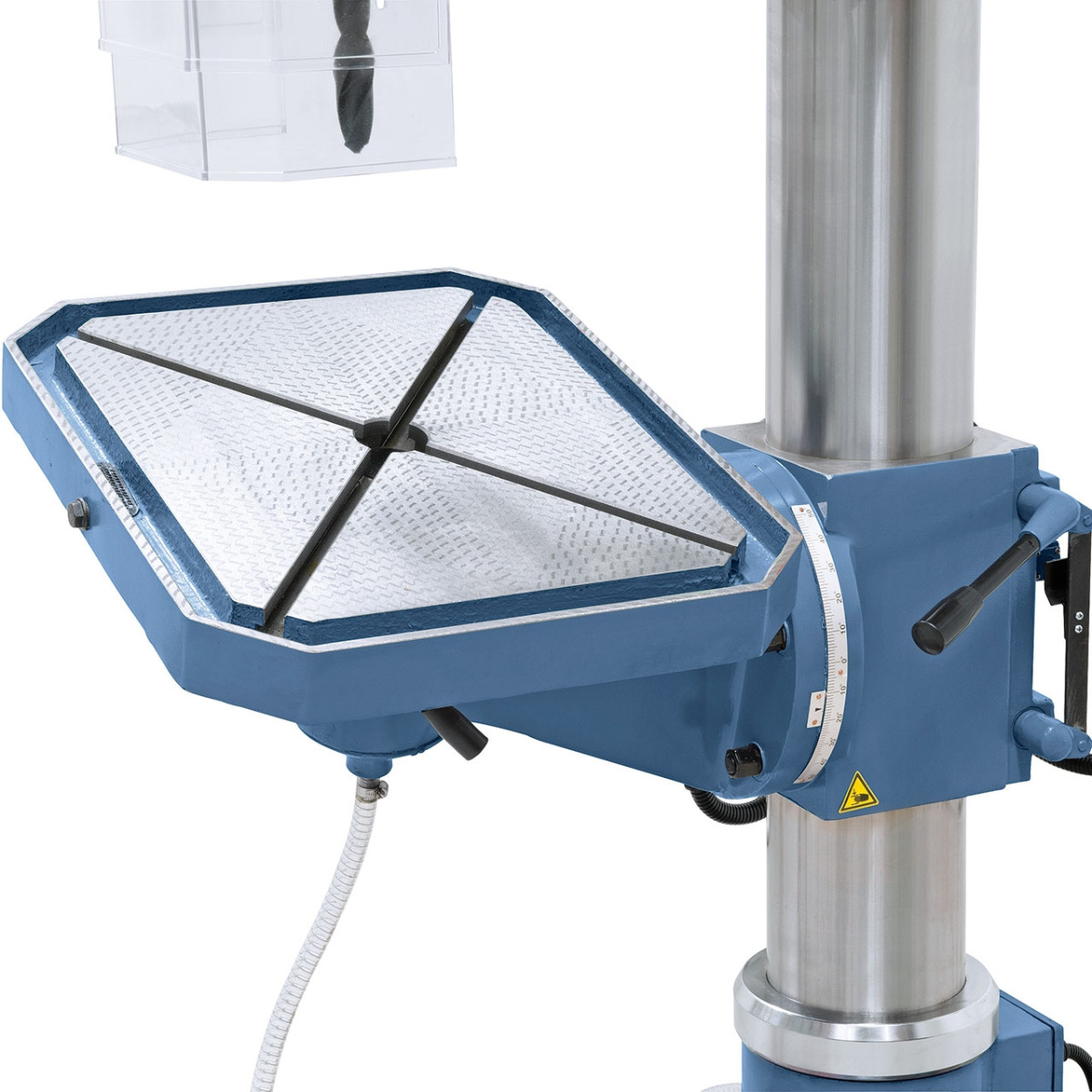 Der großzügig dimensionierte Bohrtisch ist von -45° bis +45° schwenkbar sowie drehbar.