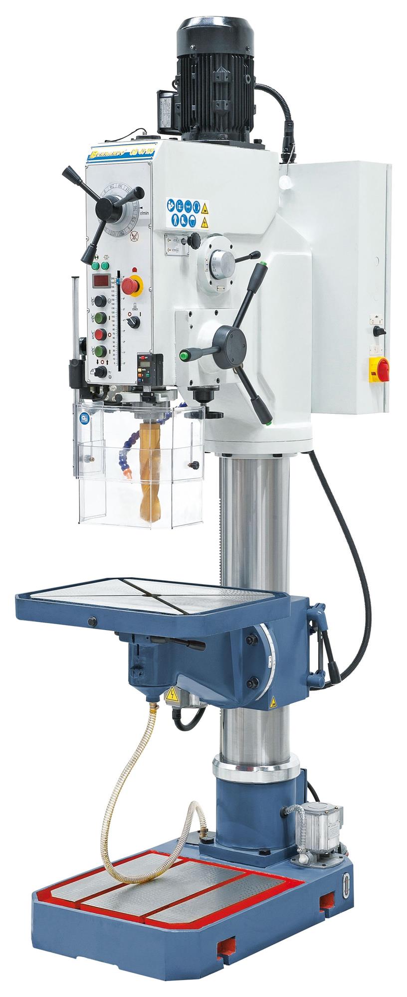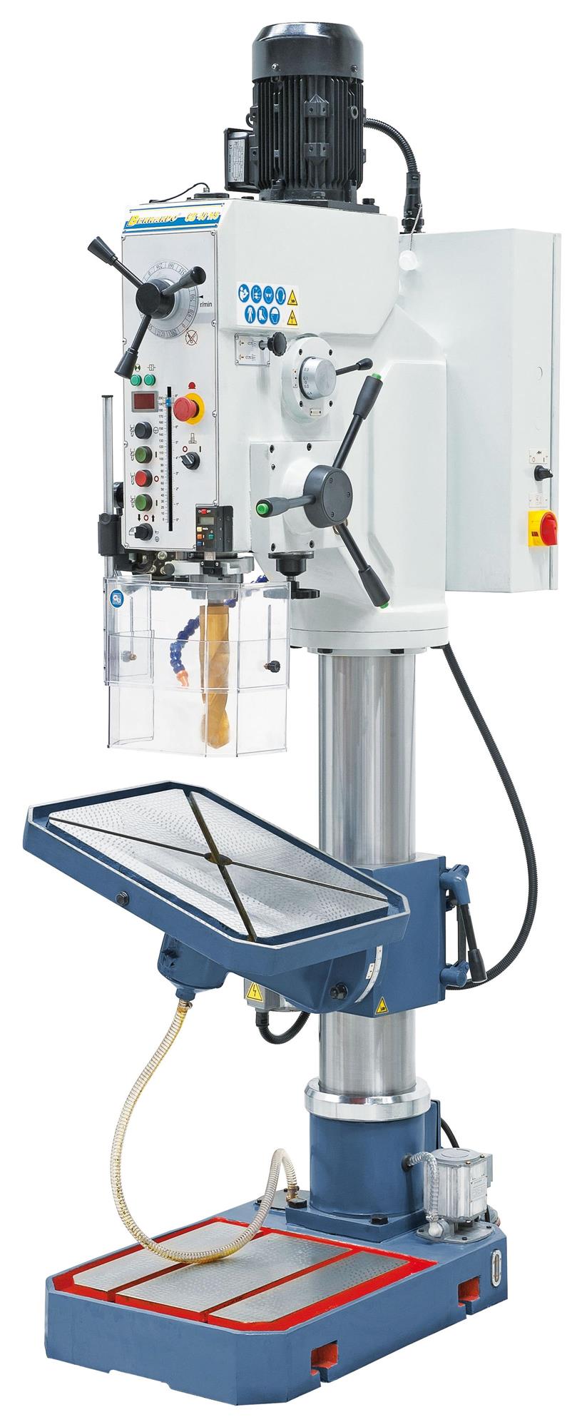 Inklusive motorischem Tischhub sowie Digitalanzeigen für Bohrtiefe und Drehzahl