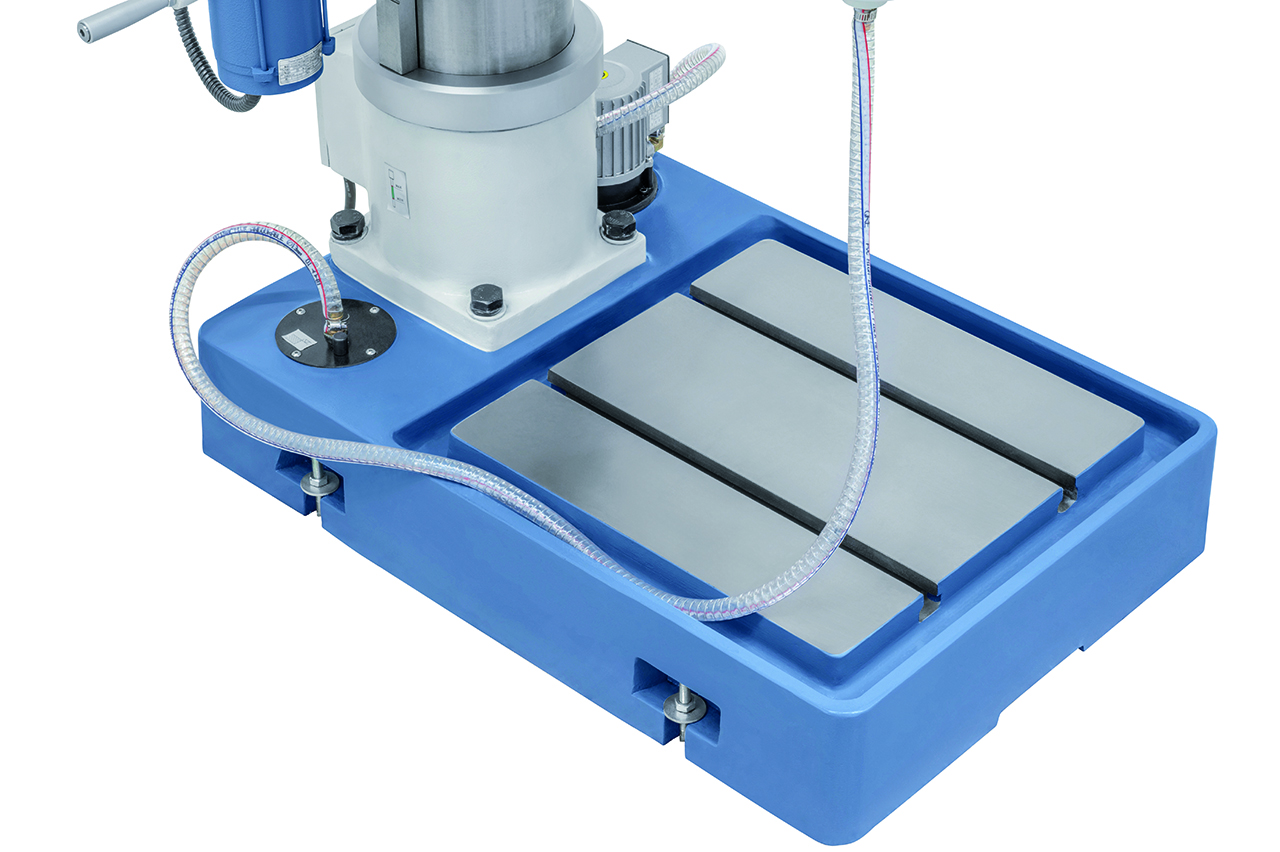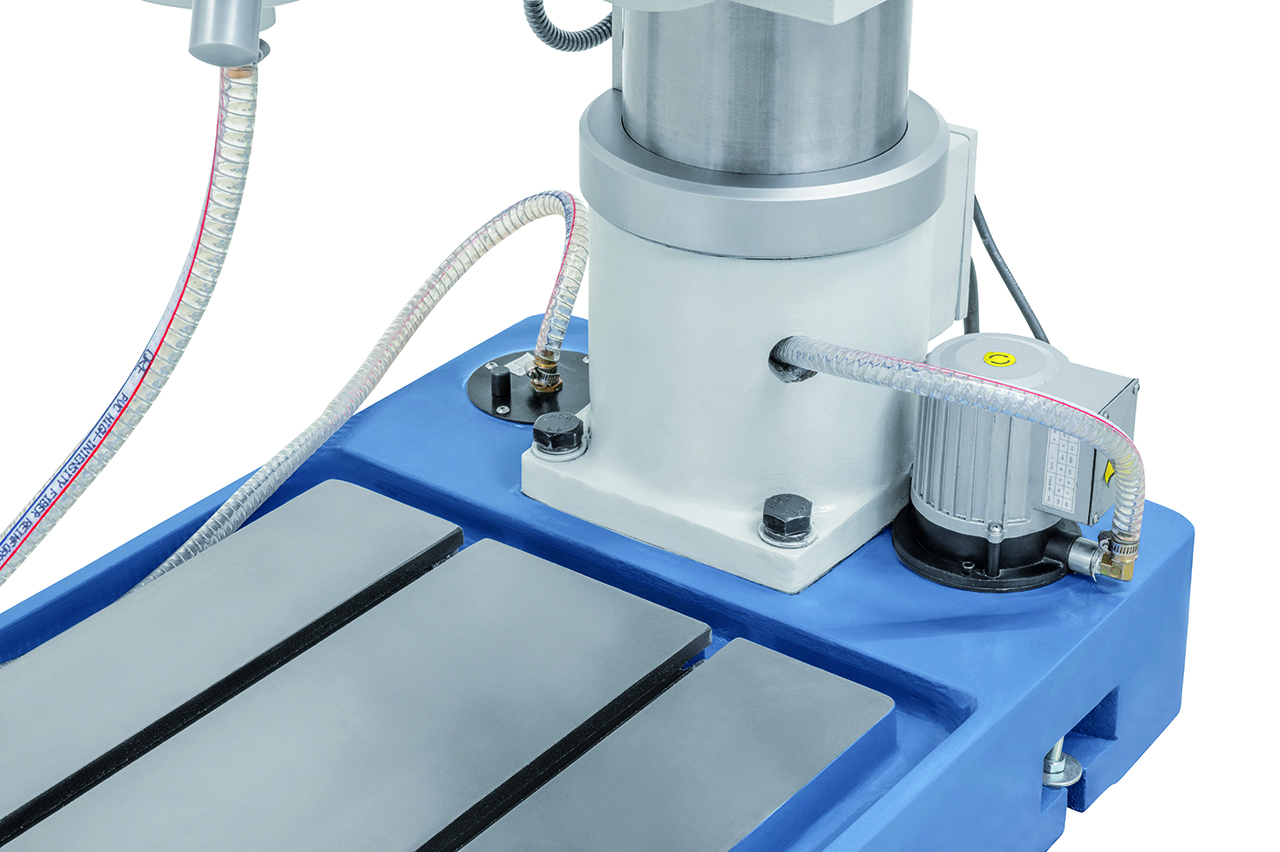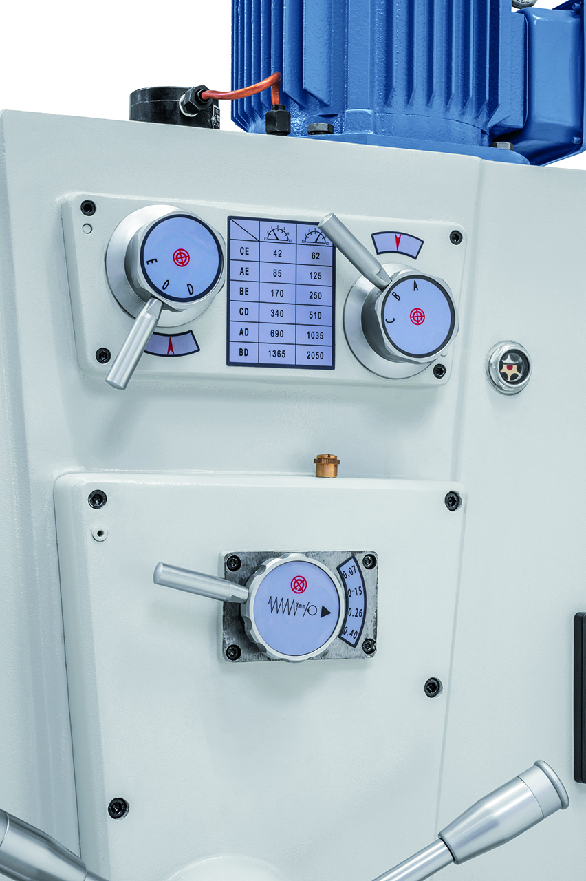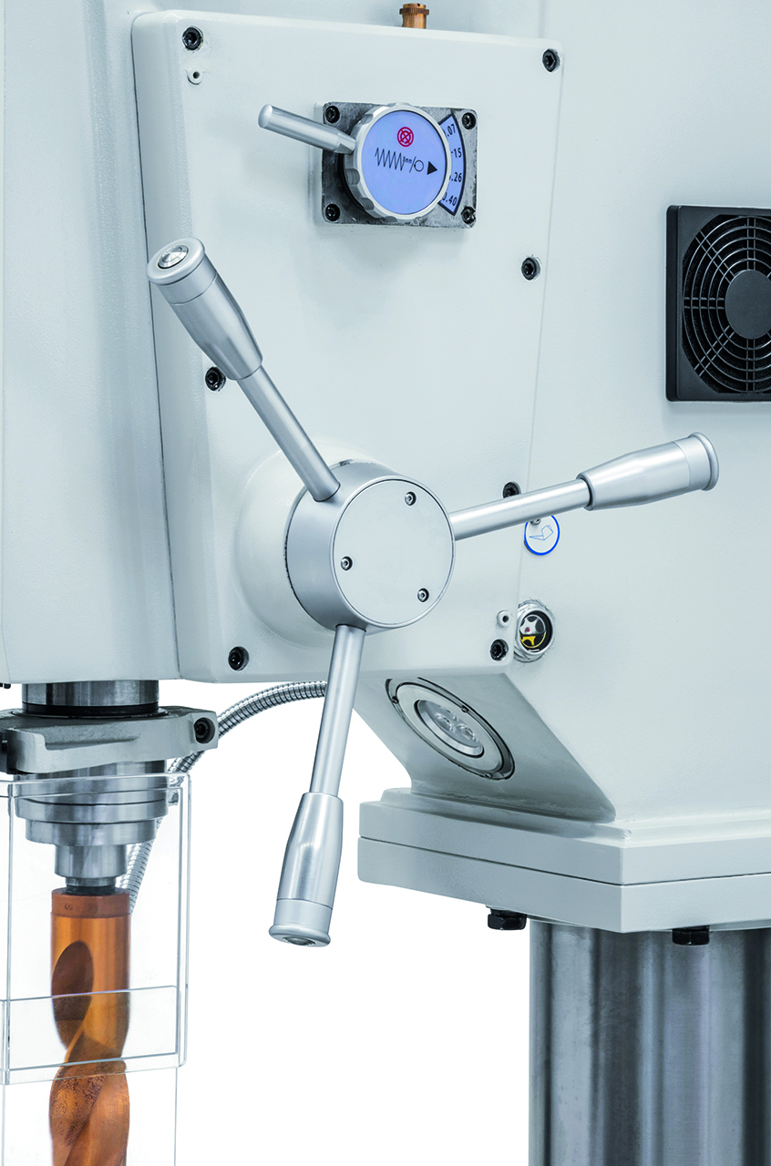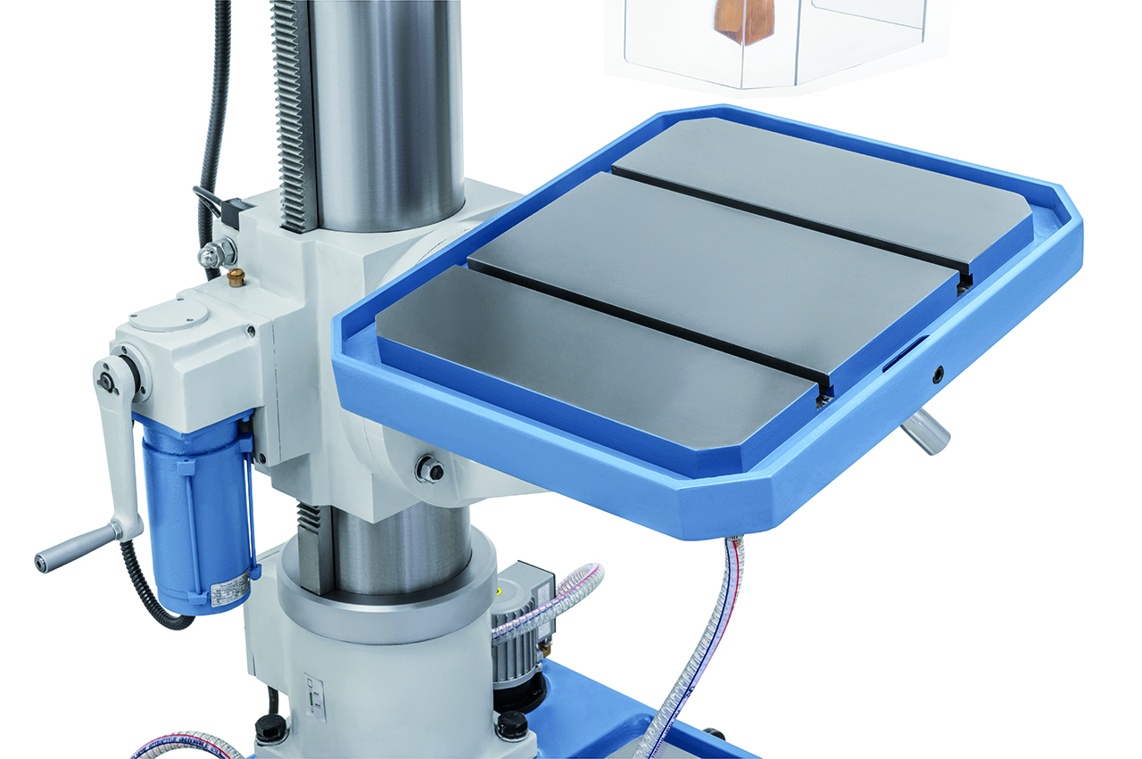 Die Getriebebohrmaschine GB 55 ist serienmäßig mit einem motorischen Tischhub zur Reduzierung der Nebenzeiten ausgestattet. Durch die robuste Ausführung und der großen Leistungsfähigkeit ist dieses Modell sowohl für Reparaturbetriebe als auch für die industrielle Fertigung verwendbar.