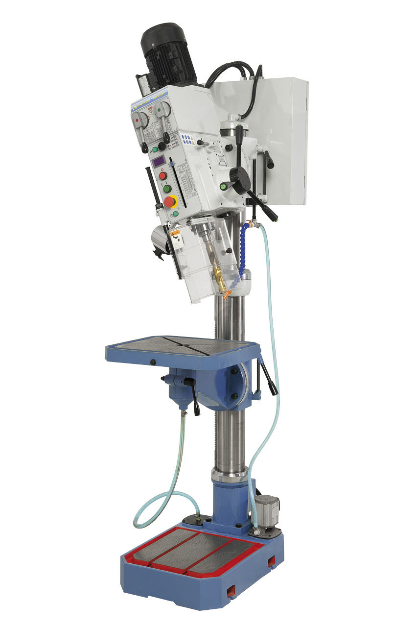 Der Bohrvorschub erfolgt wahlweise per Hand oder mittels Elektromagnetkupplung (0,1 / 0,2 / 0,3 mm/U)
