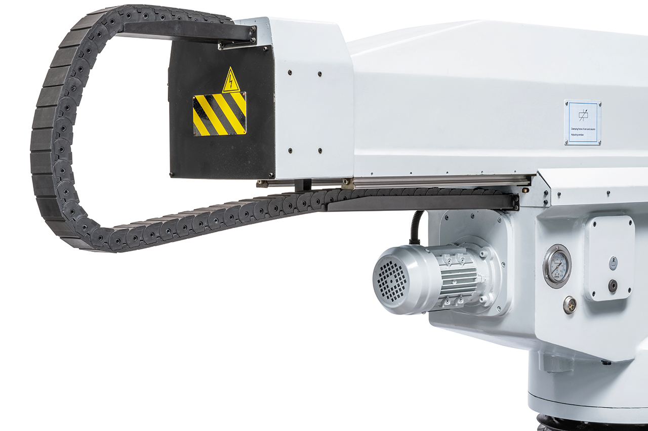 Serienmäßig mit elektronisch stufenloser Drehzahlregelung und 2 Getriebestufen Stark verrippte Säule gewährleistet eine große Starrheit des Auslegers
