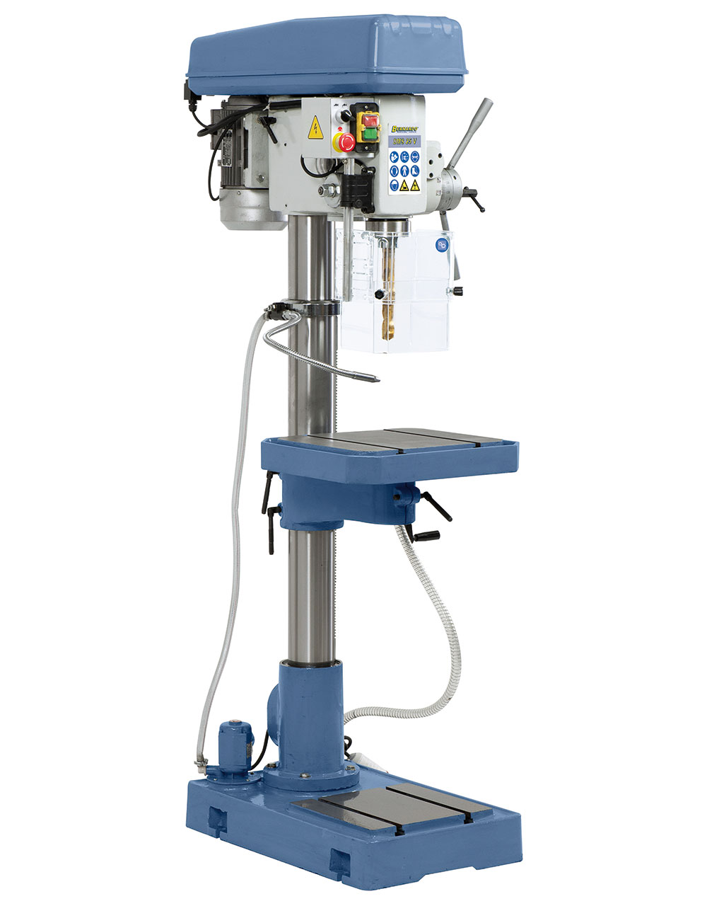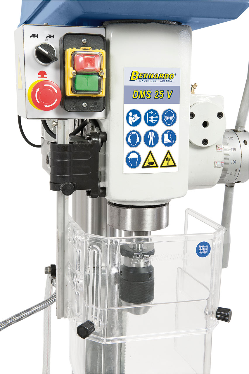 Beschreibung: Die Bohrmaschine DMS 25 V besticht durch ihre robuste Bauweise und ist für den Dauereinsatz bestens geeignet. Zusätzlich bietet dieses Modell durch den automatischen Pinolenvorschub einen erhöhten Bedienkomfort. Features: