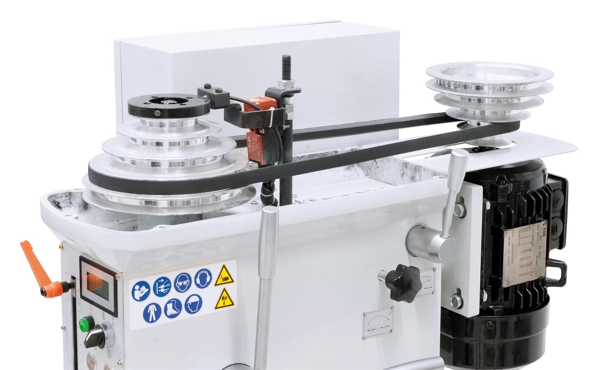 Stufenlos einstellbarer Pinolenvorschub mit separatem Antriebsmotor.