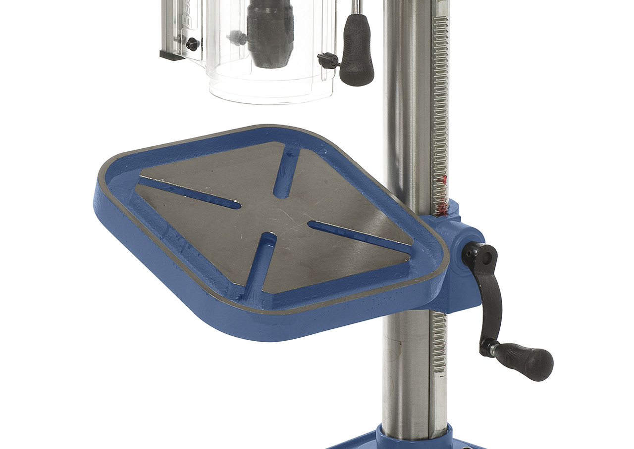 Bohrtisch schwenkbar (± 45°), Höhenverstellung über Zahnstange