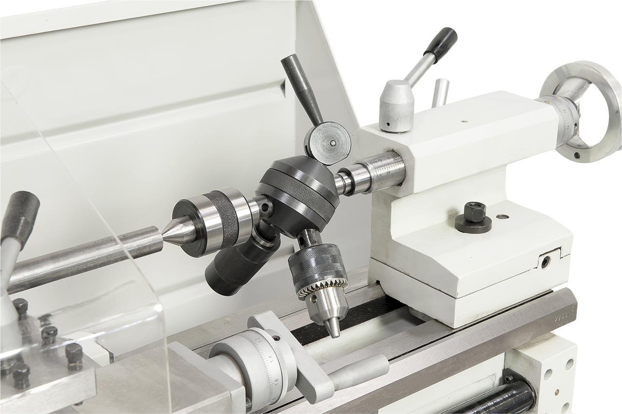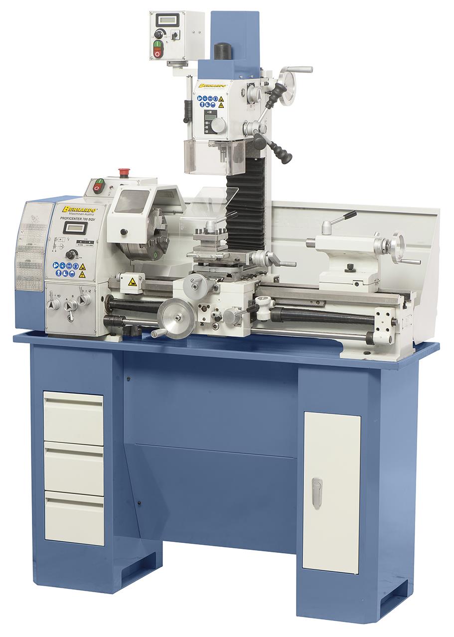 Beschreibung:Unser Topmodell Proficenter 700 BQV lässt für Feinmechaniker, Ausbildungs- und Lehrwerkstätten keine Wünsche offen. Bohren, Fräsen und Drehen auf kleinstem Raum, serienmäßig mit digitaler Anzeige für Bohrtiefe und Drehzahl zum komfortablen Arbeiten, sowie eine große Spindelbohrung, alles kombiniert in einer Maschine. Zur Reduzierung der Fertigungszeiten ist dieses Modell mit einer 2-Achs-Digitalanzeige lieferbar. Features:
