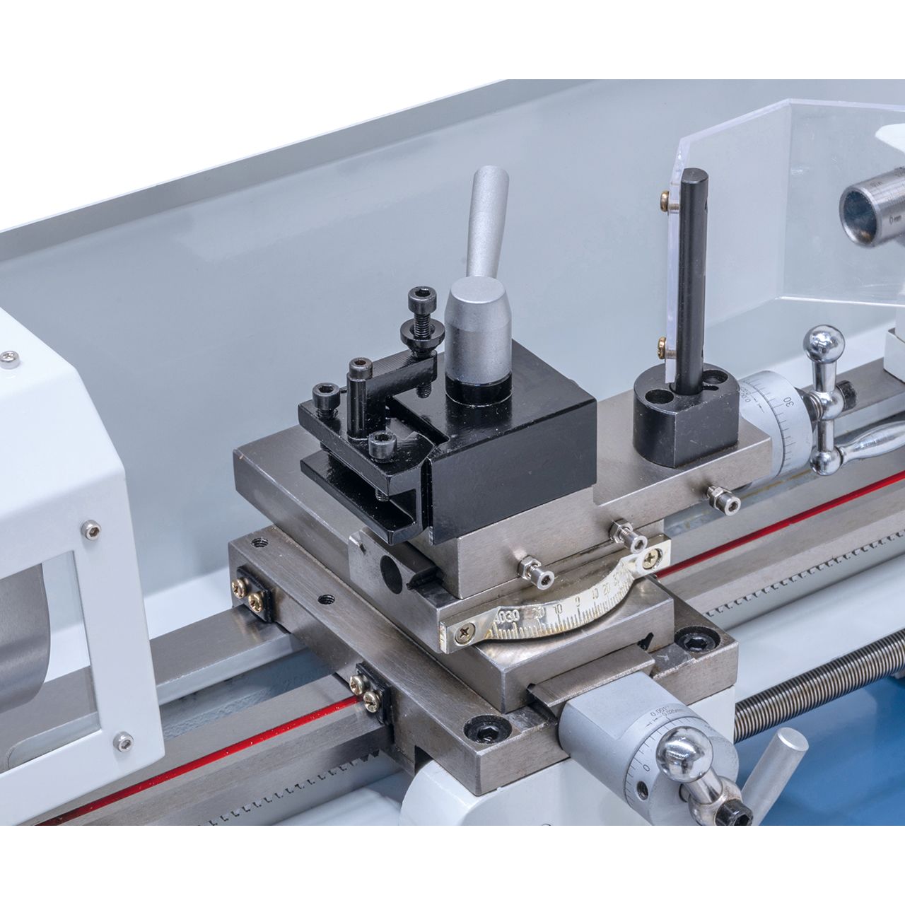 Beschreibung:Die Tischdrehmaschine Hobby 350 Top bietet durch den bürstenlosen Gleichstrommotor eine hohe Laufruhe sowie einen gleichmäßigen Antrieb der Spindel. Zur Reduzierung der Fertigungszeiten kann dieses Modell mit einer 2-Achs-Digitalanzeige geliefert werden. Features: