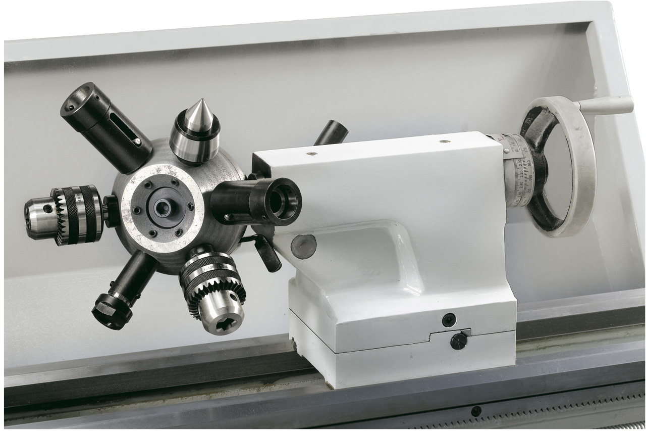 Reitstock kann zum Kegeldrehen ± 5 mm verschoben werden