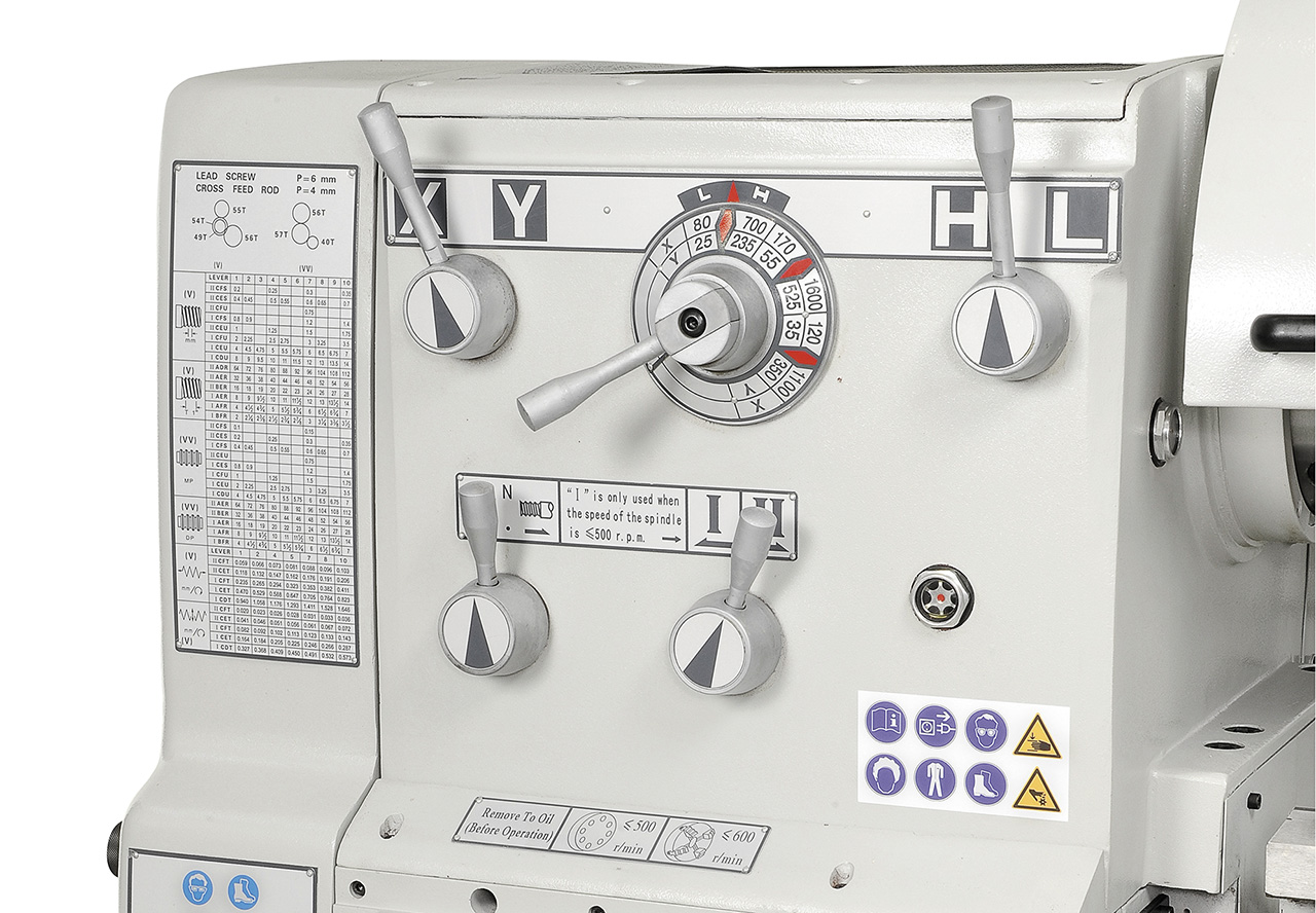 Vorschubgetriebe leicht und präzise schaltbar, geschliffene Zahnräder sorgen für einen ruhigen Lauf.