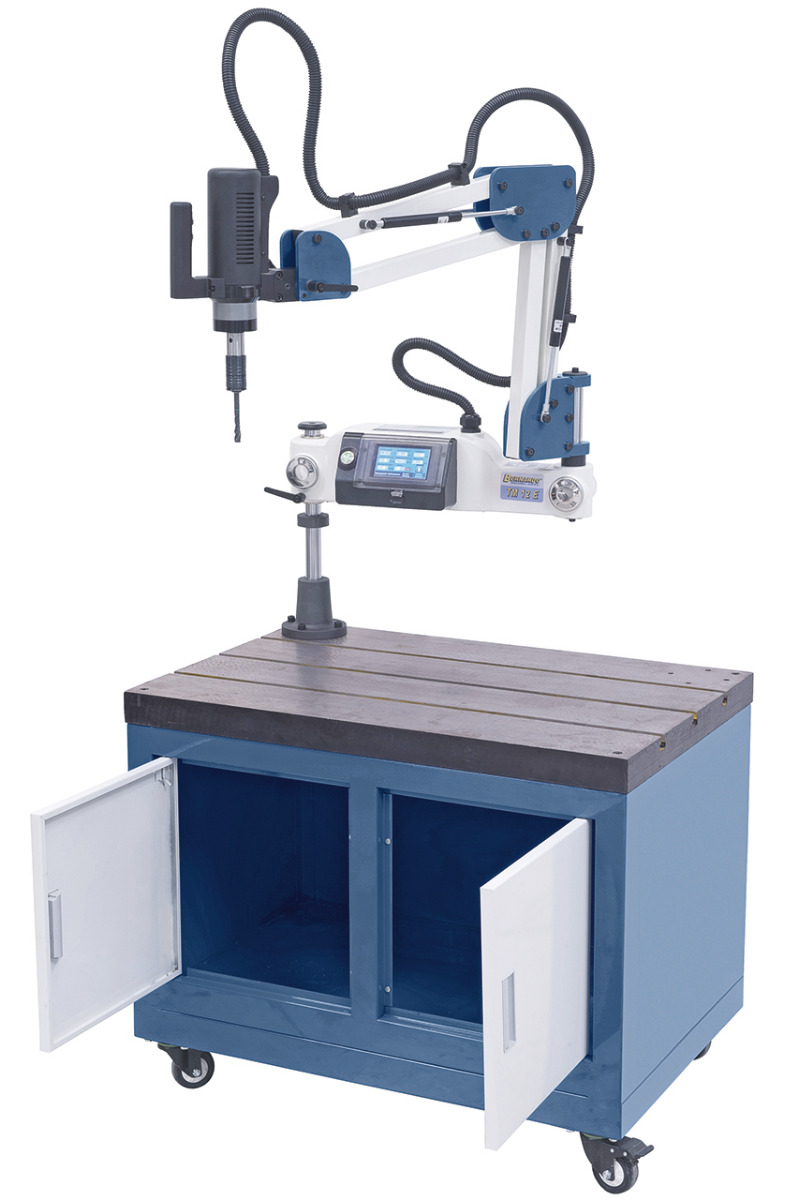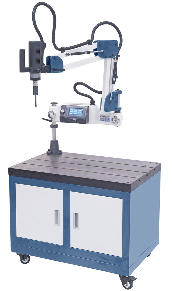 Inklusive Schwenkarm mit großem Radius für einfaches Positionieren des Gewindebohrers am Werkstück