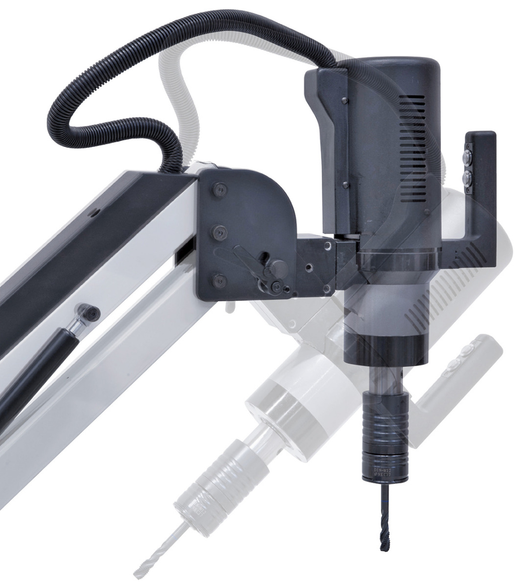 Inklusive Schwenkarm mit großem Radius für einfaches Positionieren des Gewindebohrers am Werkstück