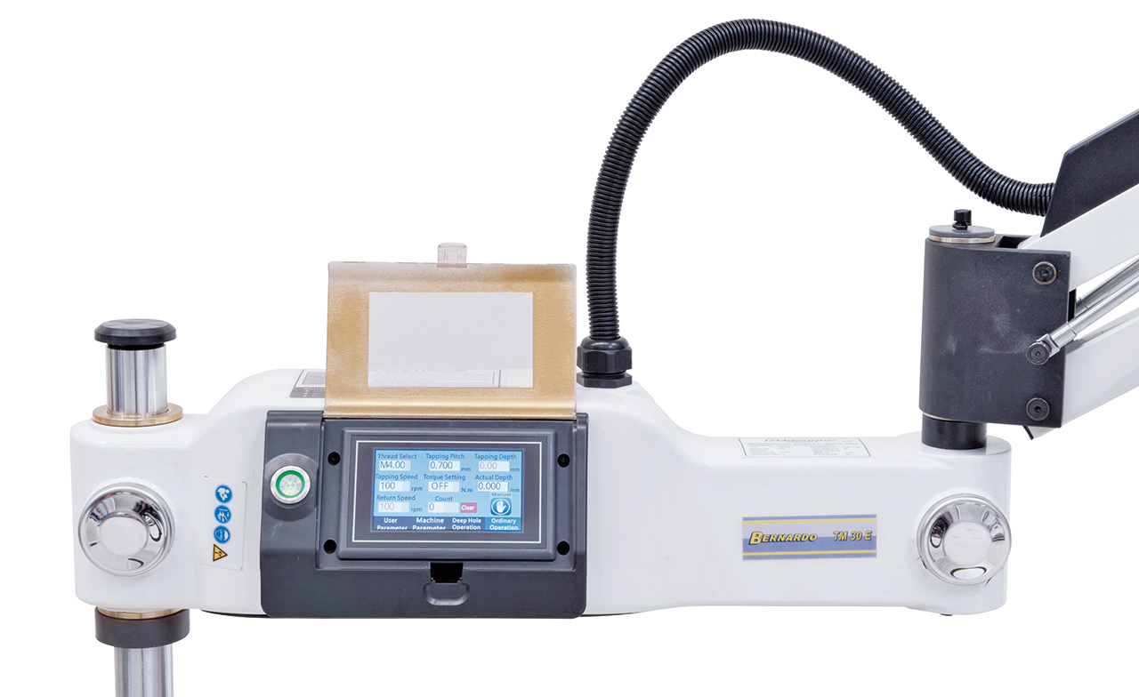 Komfortables Arbeiten: Einstellen der Gewindegröße, Steigung, Drehzahl und Bohrtiefe direkt über den integrierten Touchscreen