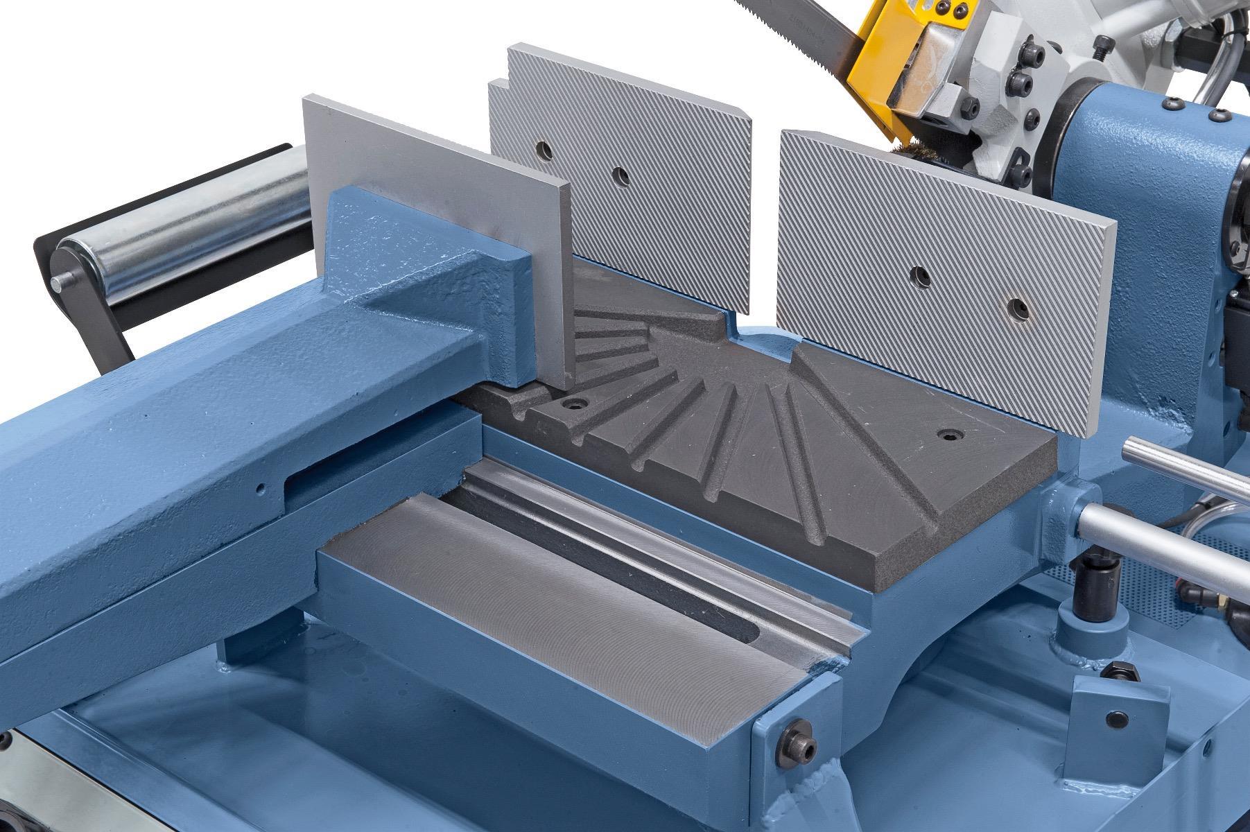 Beschreibung:Das Modell MBS 280 DG-V PRO ist eine präzise Horizontalbandsäge für den universellen Einsatz. Die Merkmale dieser Maschine sind der schwenkbare Sägebügel für Doppelgehrungsschnitte von -45° bis +60°, sowie ein Hydraulikzylinder zum feinfühligen Absenken mittels Regelventil. Das Modell verfügt zusätzlich über eine stufenlos regelbare Schnittgeschwindigkeit. Features: